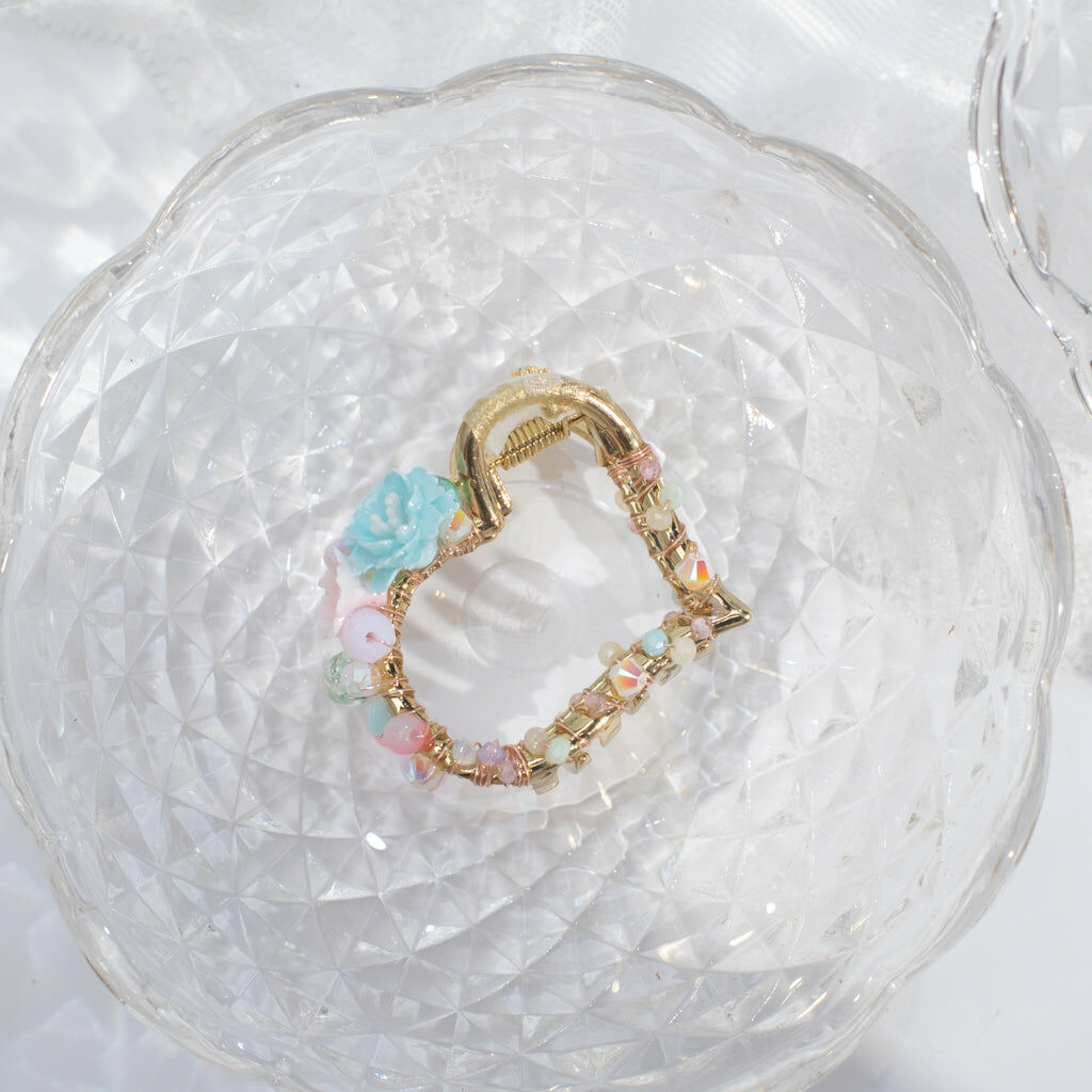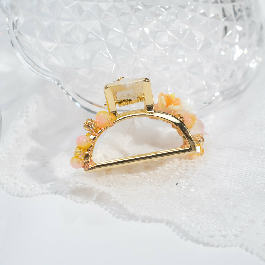 Gold Plated Artistic Wire | Swarovski Crystal Bead | Handcrafted Resin Clay Flower | UV Hardening Coating | Metal Claw Clip