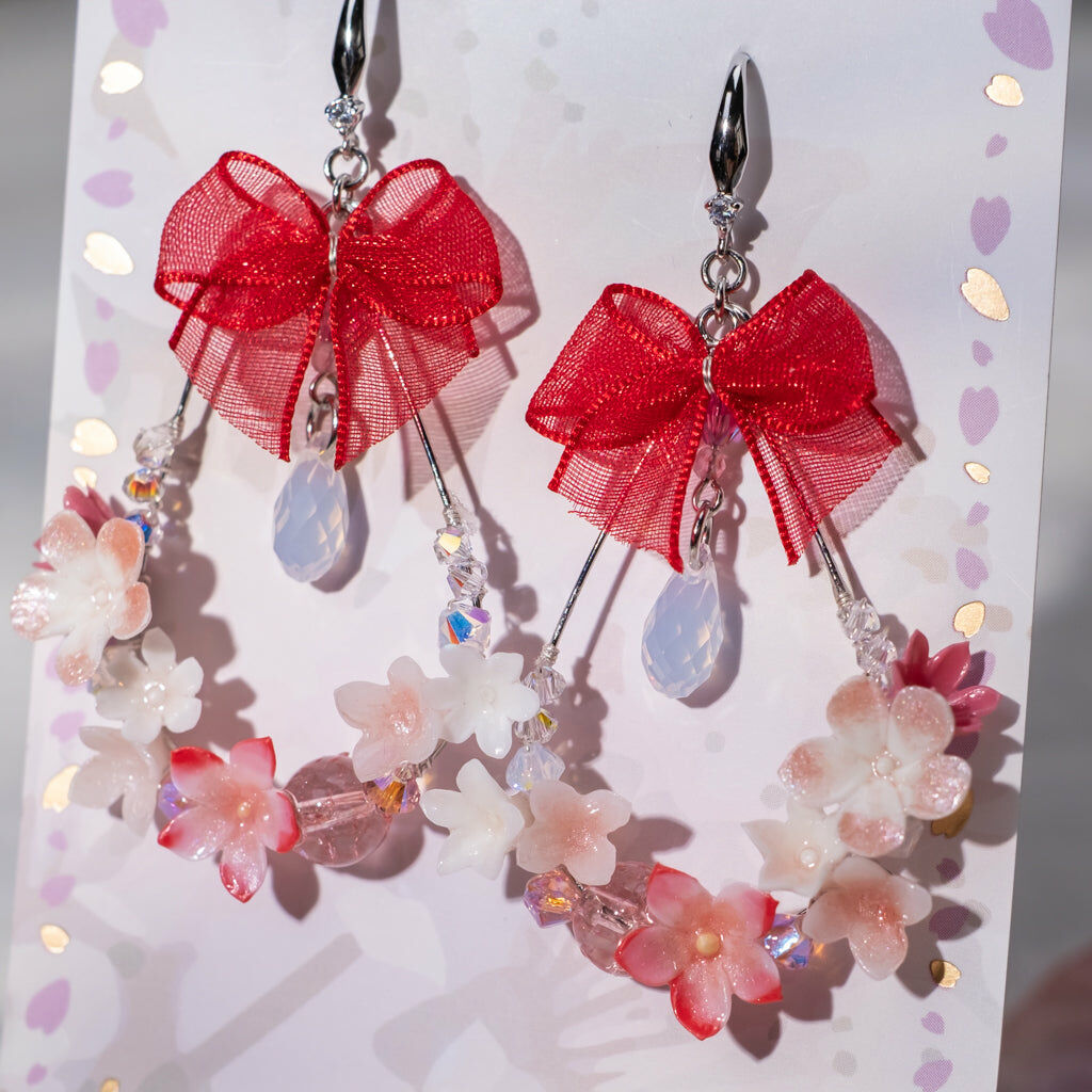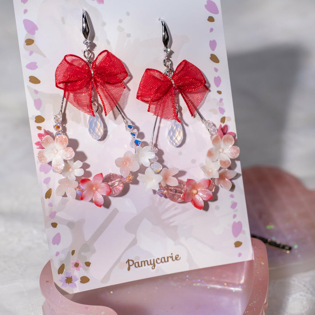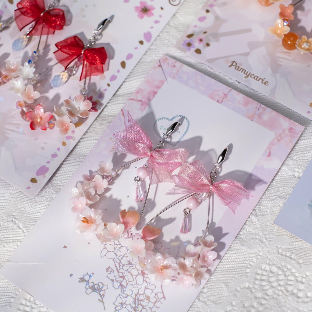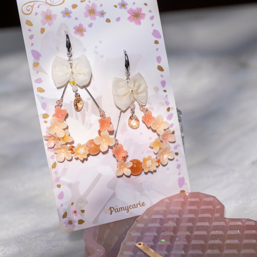鍍金線 | 施華洛世奇水晶 | 手製樹脂黏土花 | UV膠強化保護層 | 925純銀耳釘