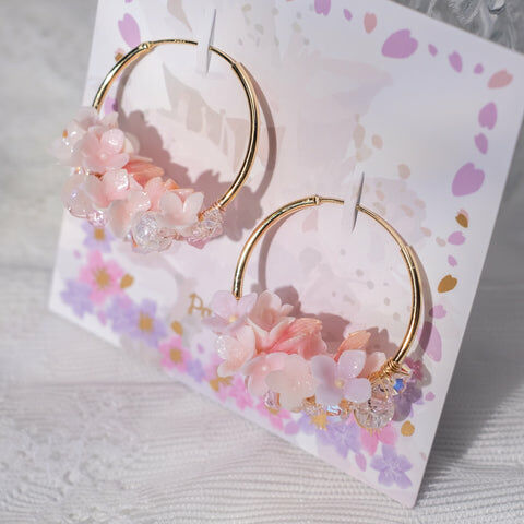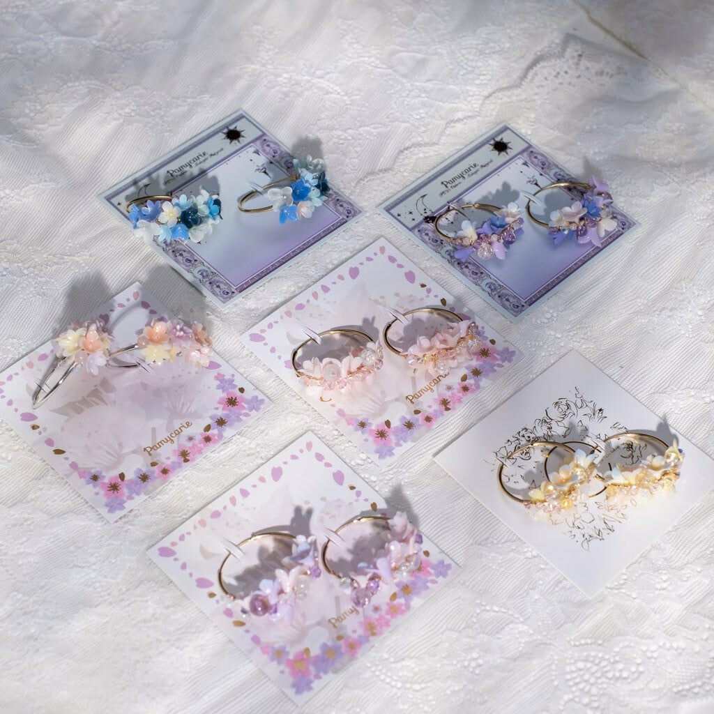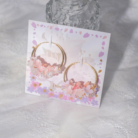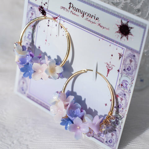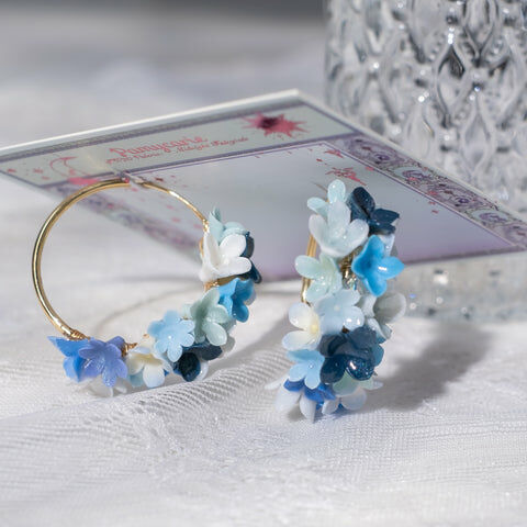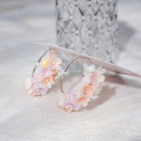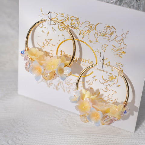 鍍金線 | 施華洛世奇水晶 | 手製樹脂黏土花 | UV膠強化保護層 | 鍍金925純銀耳釘