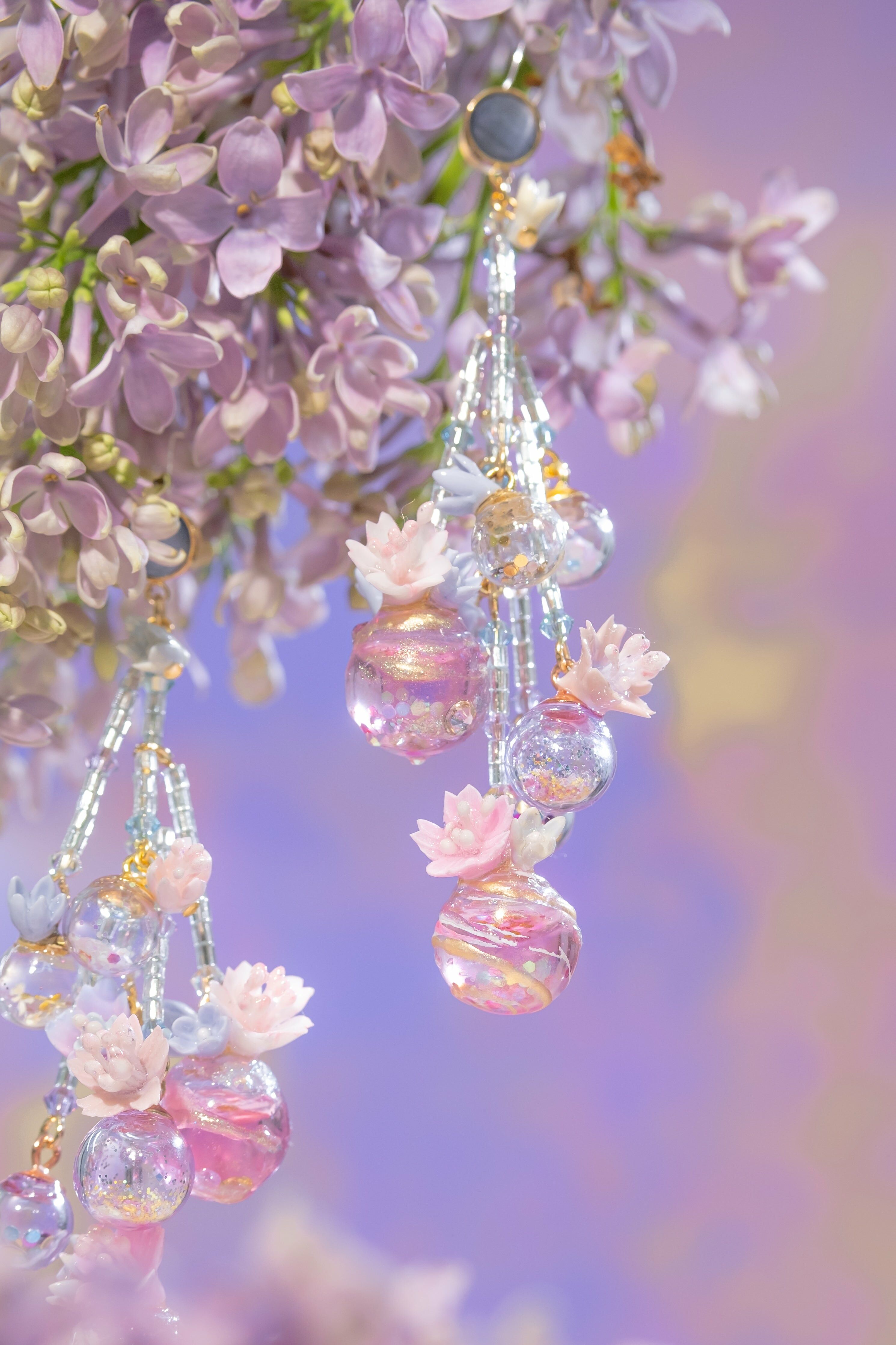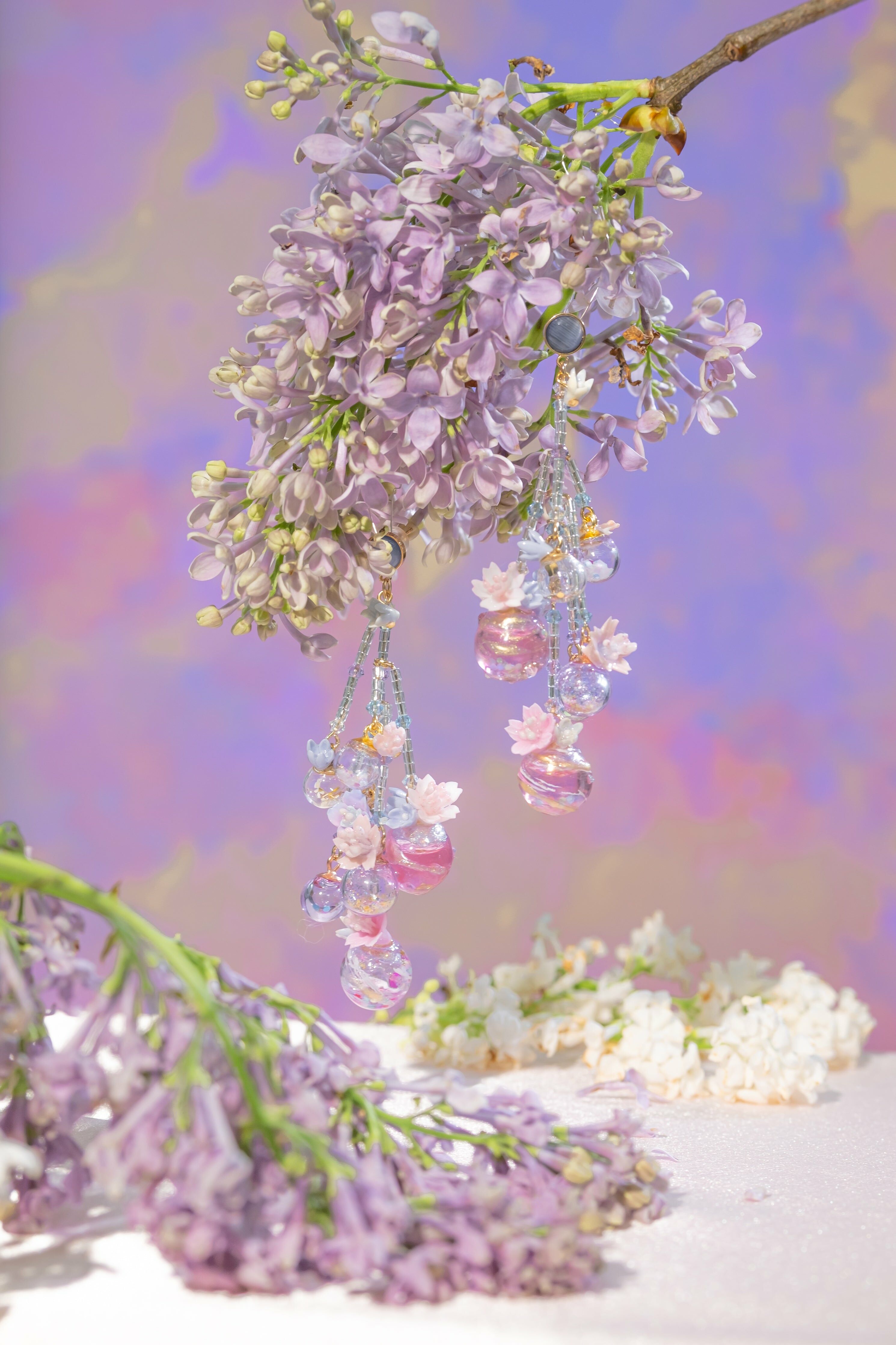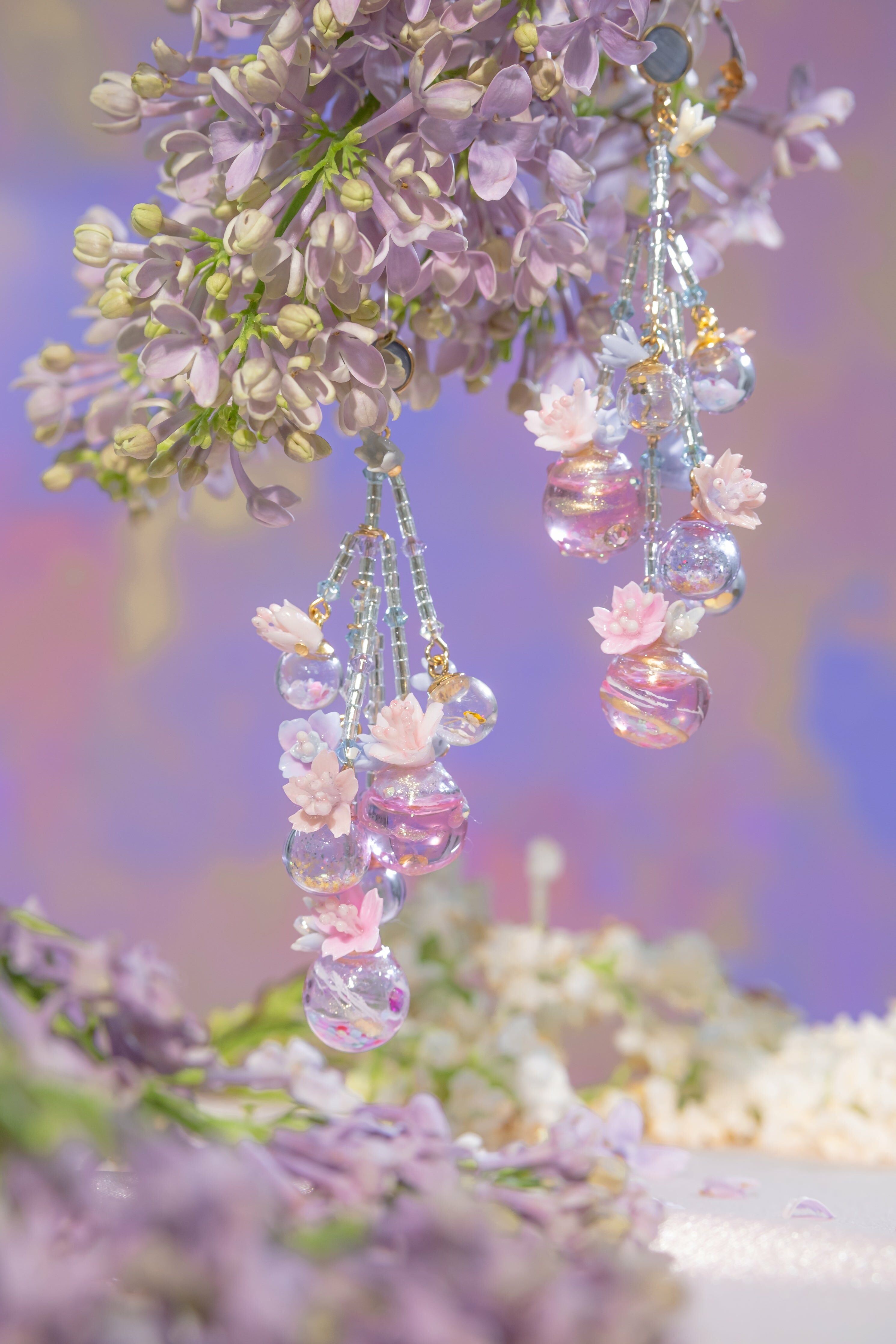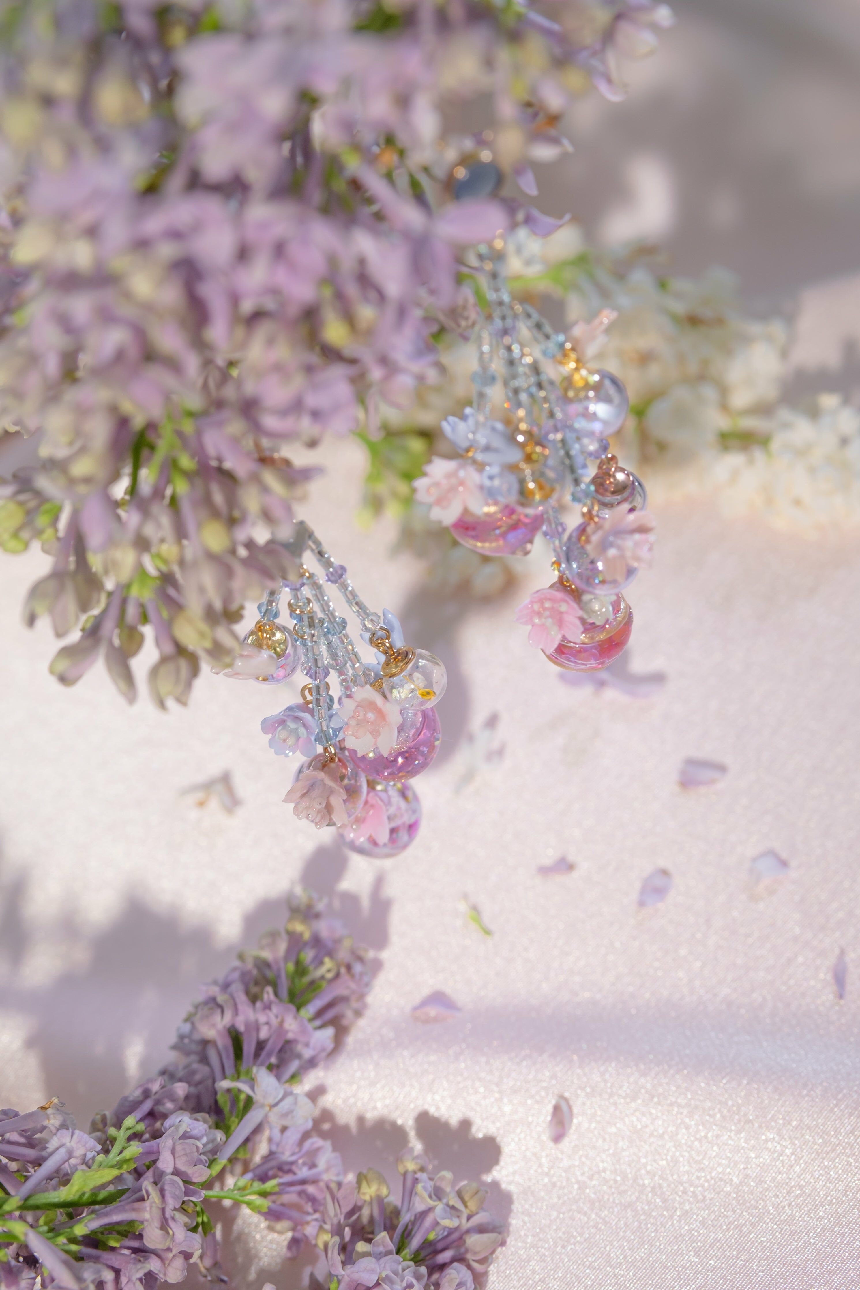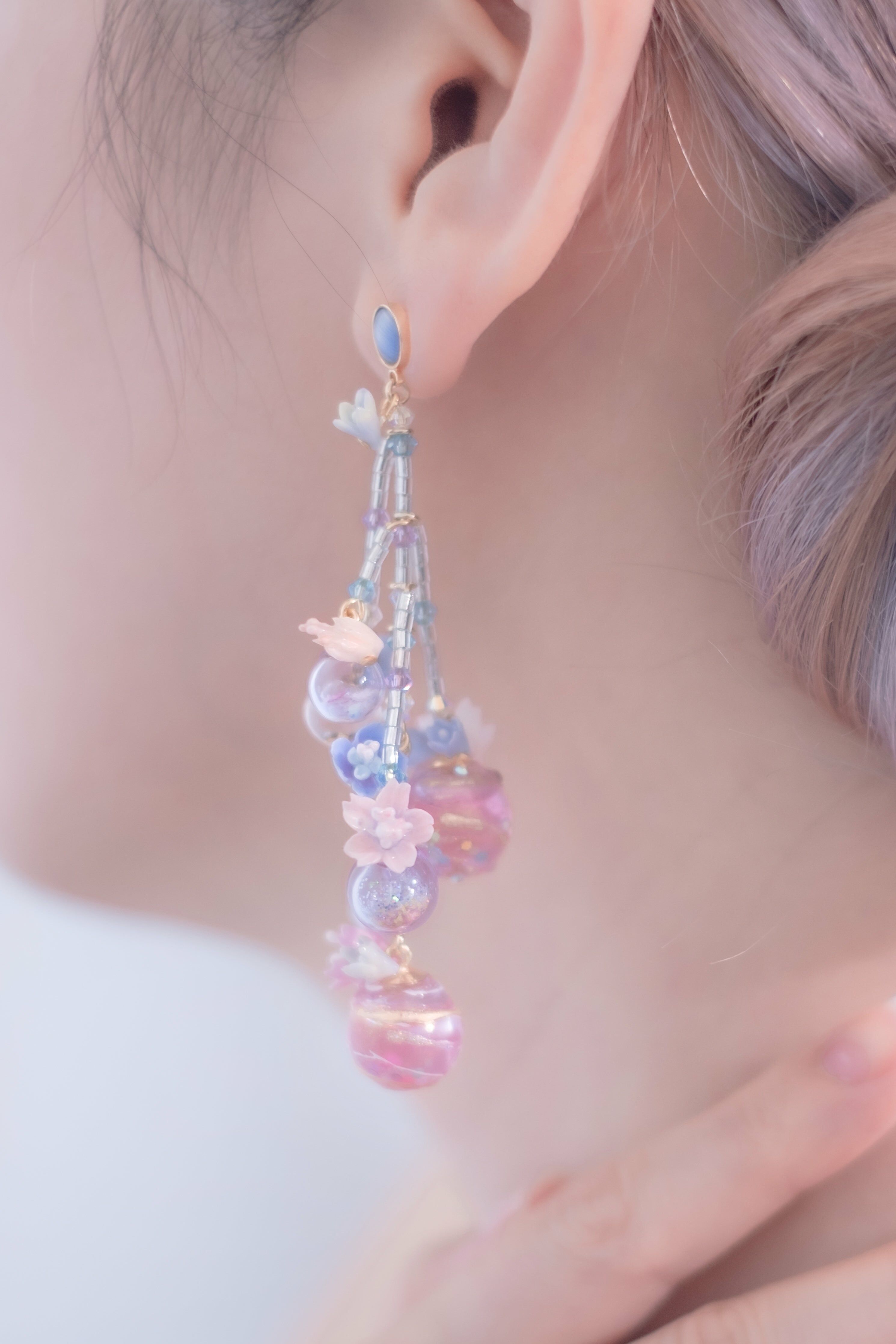美國進口Beadsmith銀線 | 施華洛世奇水晶 | 手製樹脂黏土花| UV強化保護層 | S925耳針