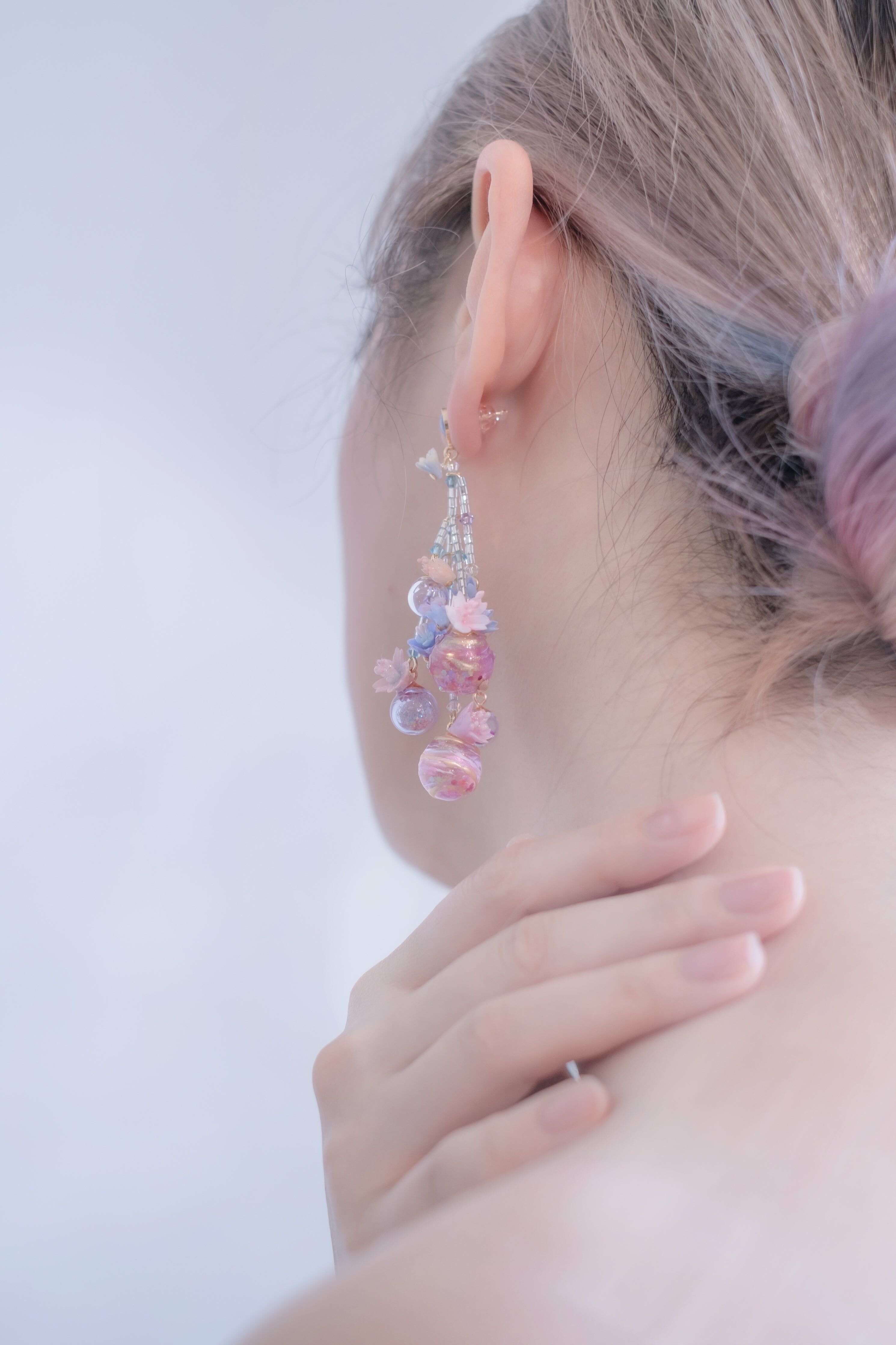 垂櫻水球鍍14K金米珠耳環