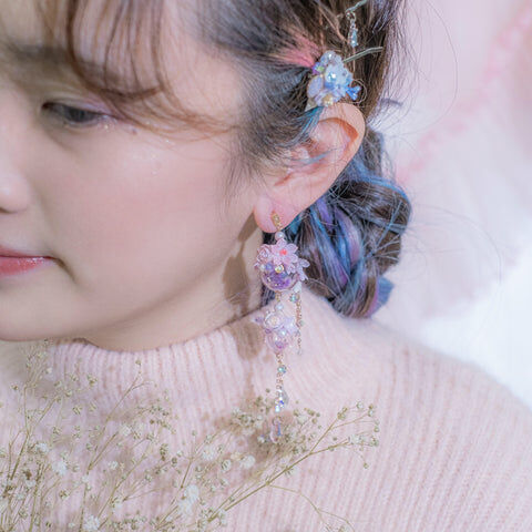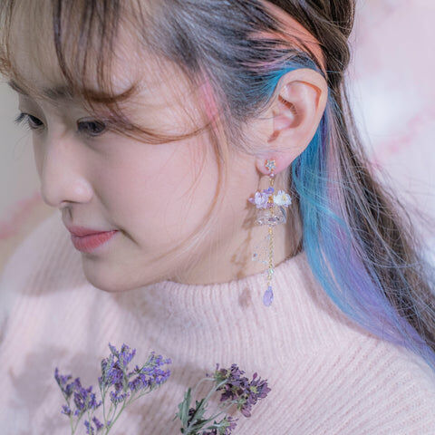 4 ❅ 玫粉紫羅蘭露水小行星S925耳環