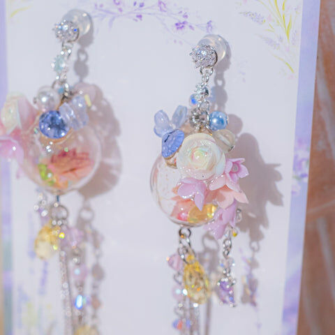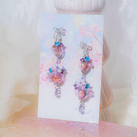 2 ❅ 蜜糖聖誕花蝴蝶園小行星S925耳環