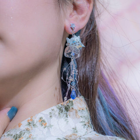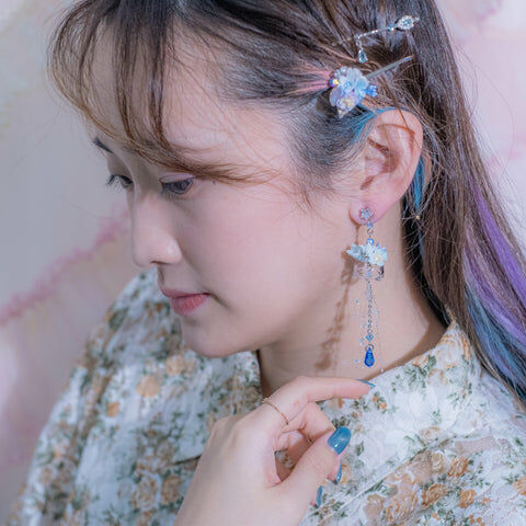 3 ❅ 幻靛聖誕花小行星S925耳環