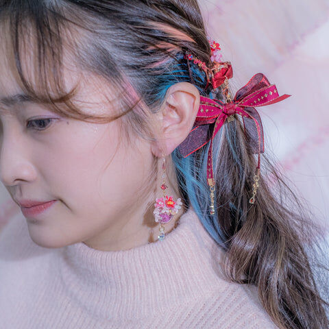 7 ❅ 玫紅聖誕星花藤園小行星S925耳環