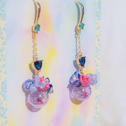 9 ❅ 寶藍玫紅蝴蝶小行星S925耳環