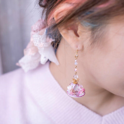 Design 4 - 薰衣草紫羅蘭別注版立體茶杯耳環 (2-way)