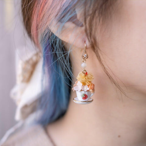 Design 3 - 蜜桃草莓糕點別注版立體茶杯耳環