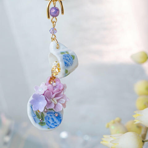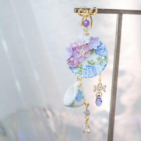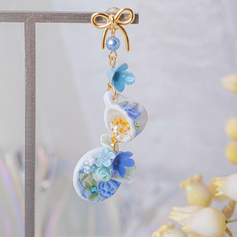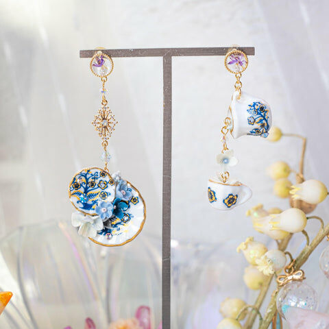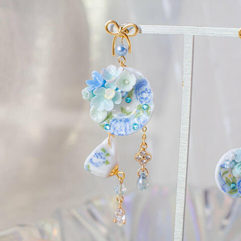 Design 5 - 藍苺花茶別注版立體茶杯耳環 (2-way)