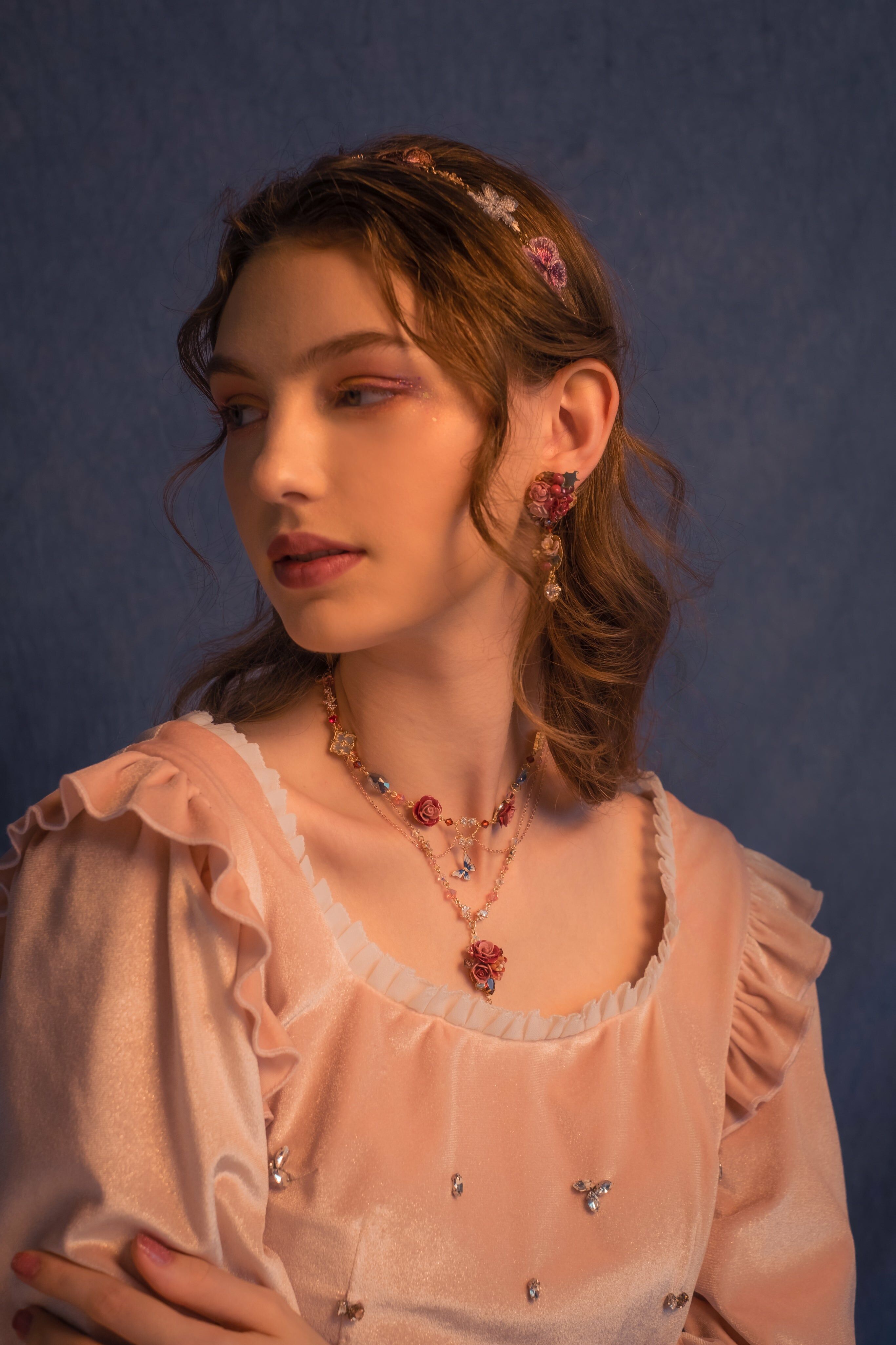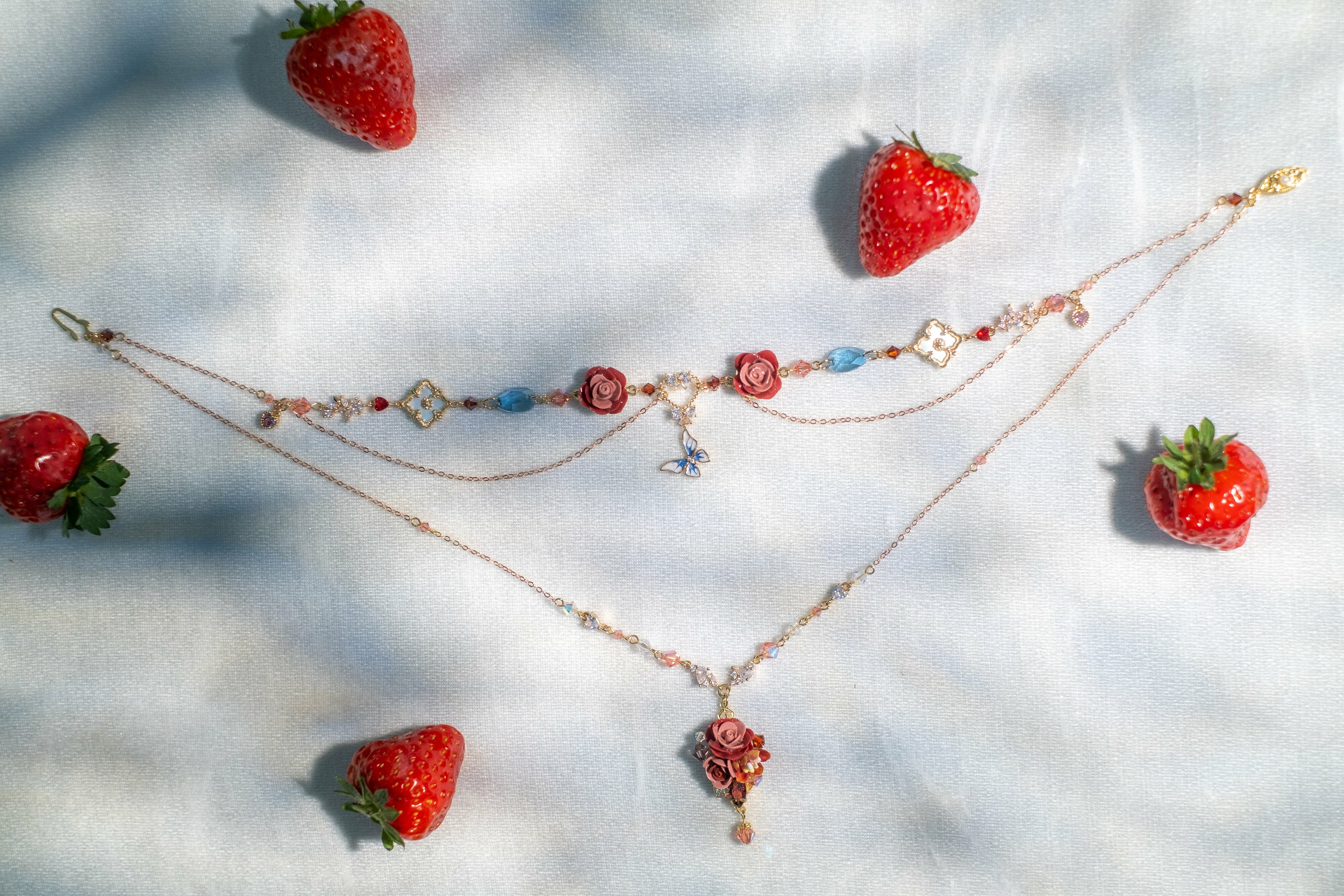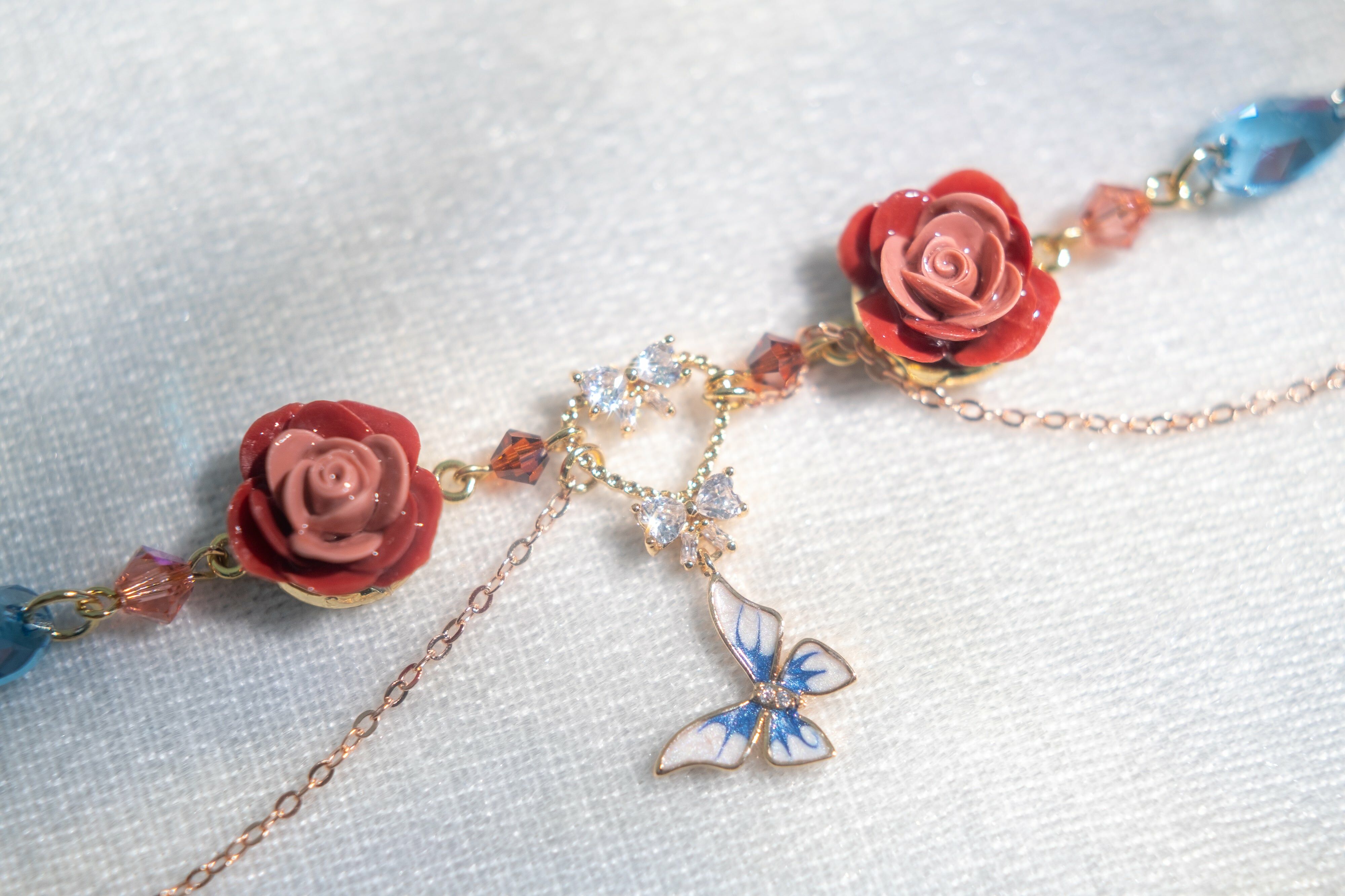 園中蝶多層次薔薇項鏈組合
