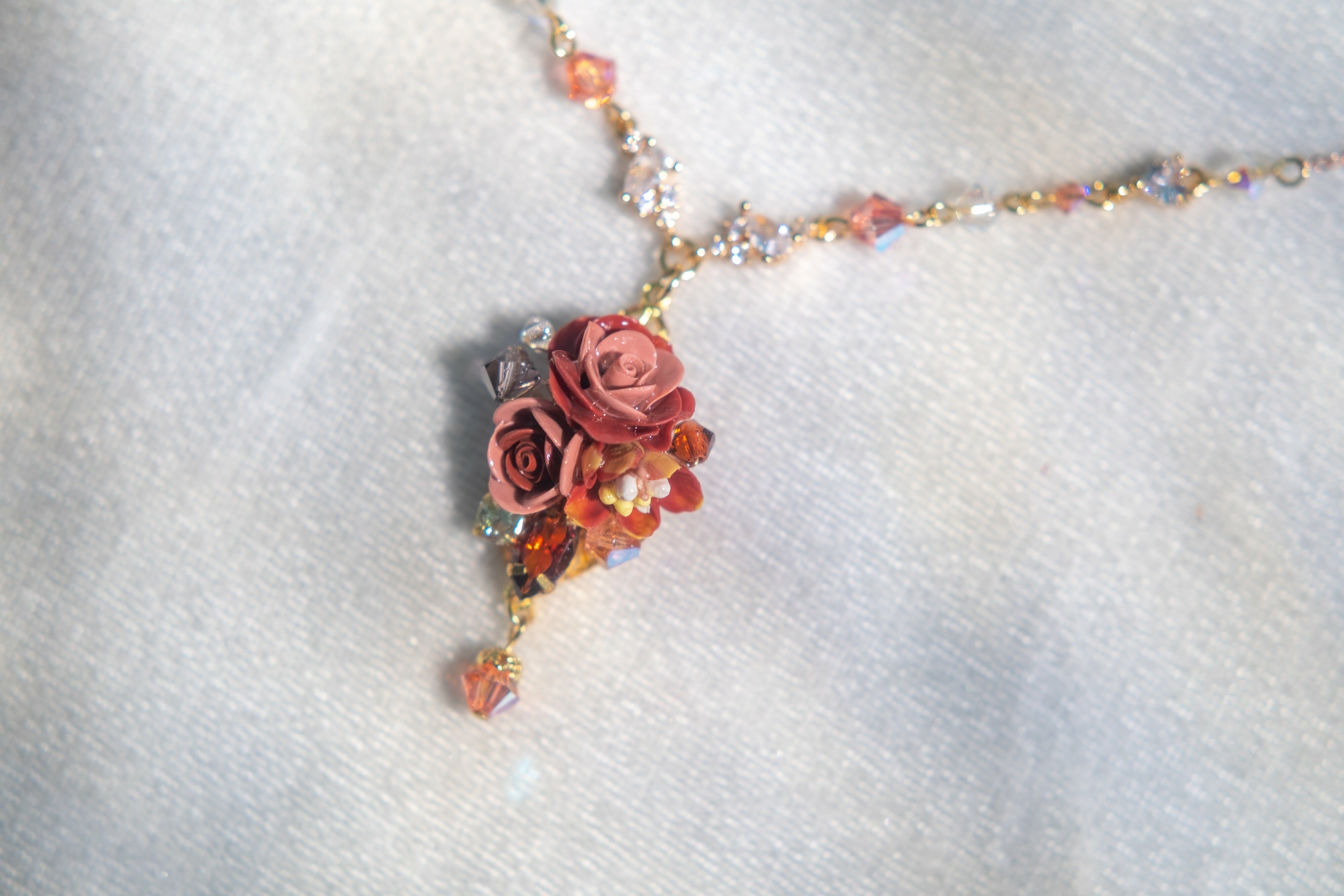 Gold-Plated Metal S925 Necklace| Handcrafted Resin Flower | UV Resin Hardening Coating | Swarovski Crystal | Cubic Zirconia