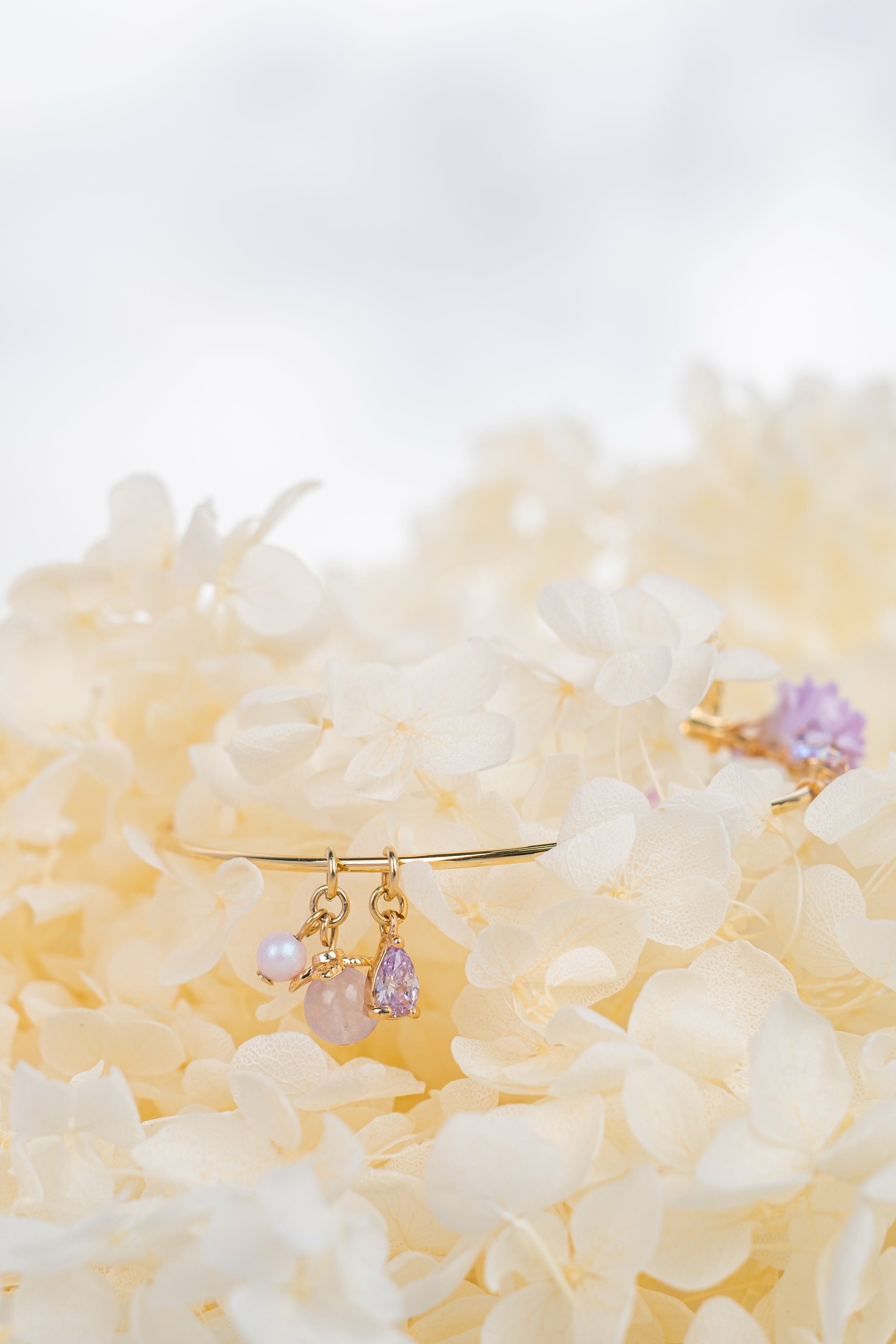 Gold-Plated Metal Bangle | Handcrafted Resin Flower | UV Resin Hardening Coating | Swarovski Crystal