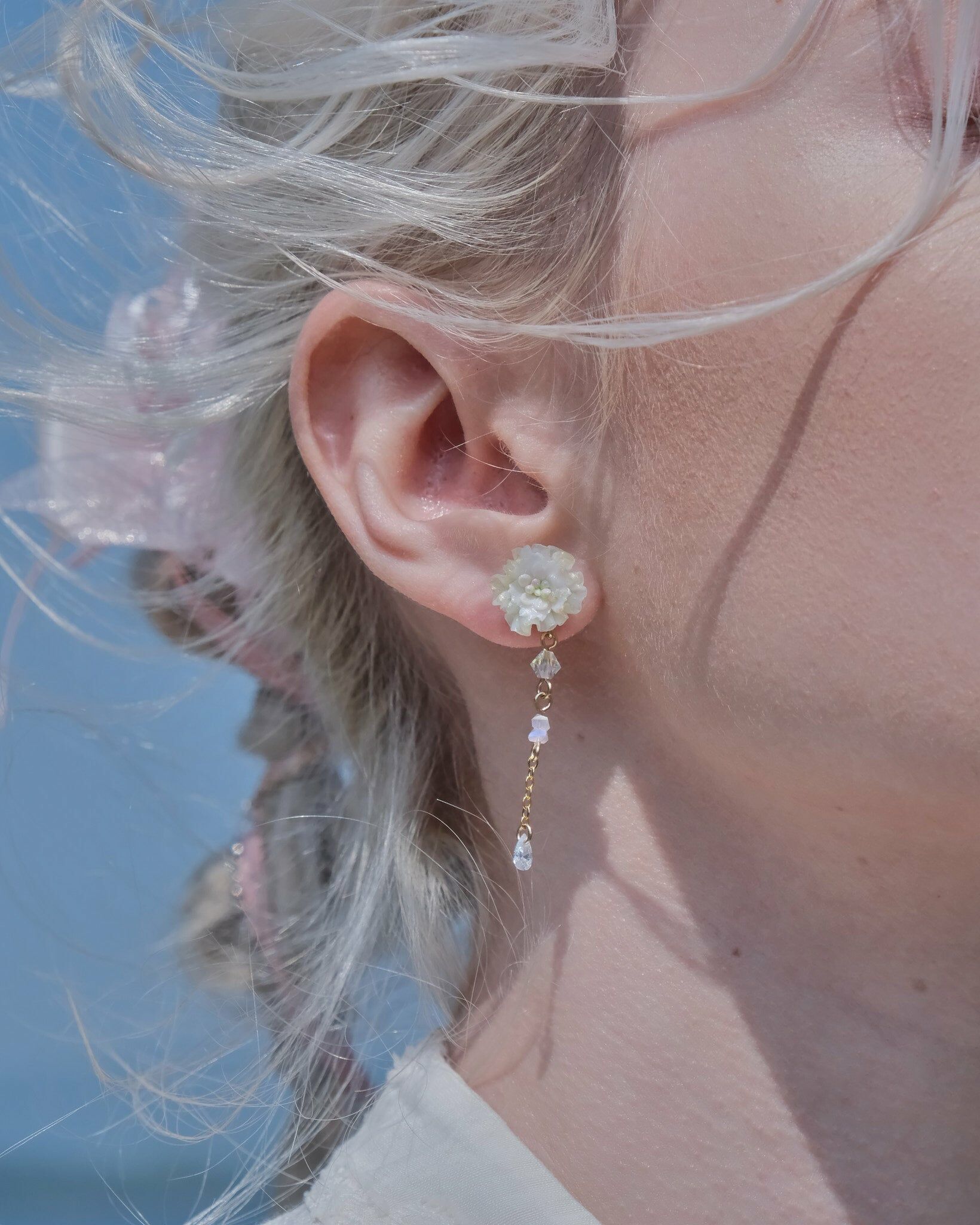S925 Ear Pin | Resin Clay Flower | Swarovski Crystals