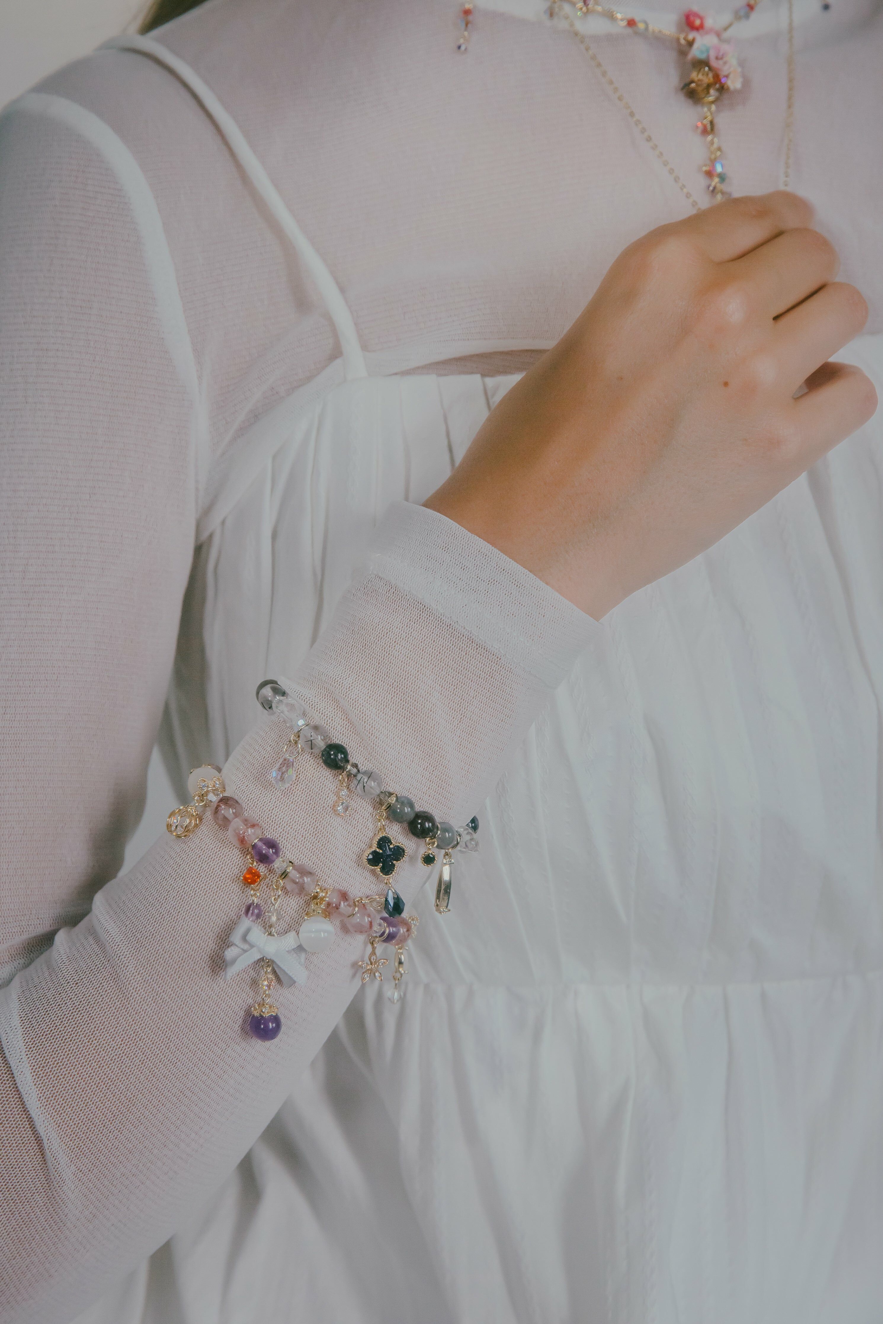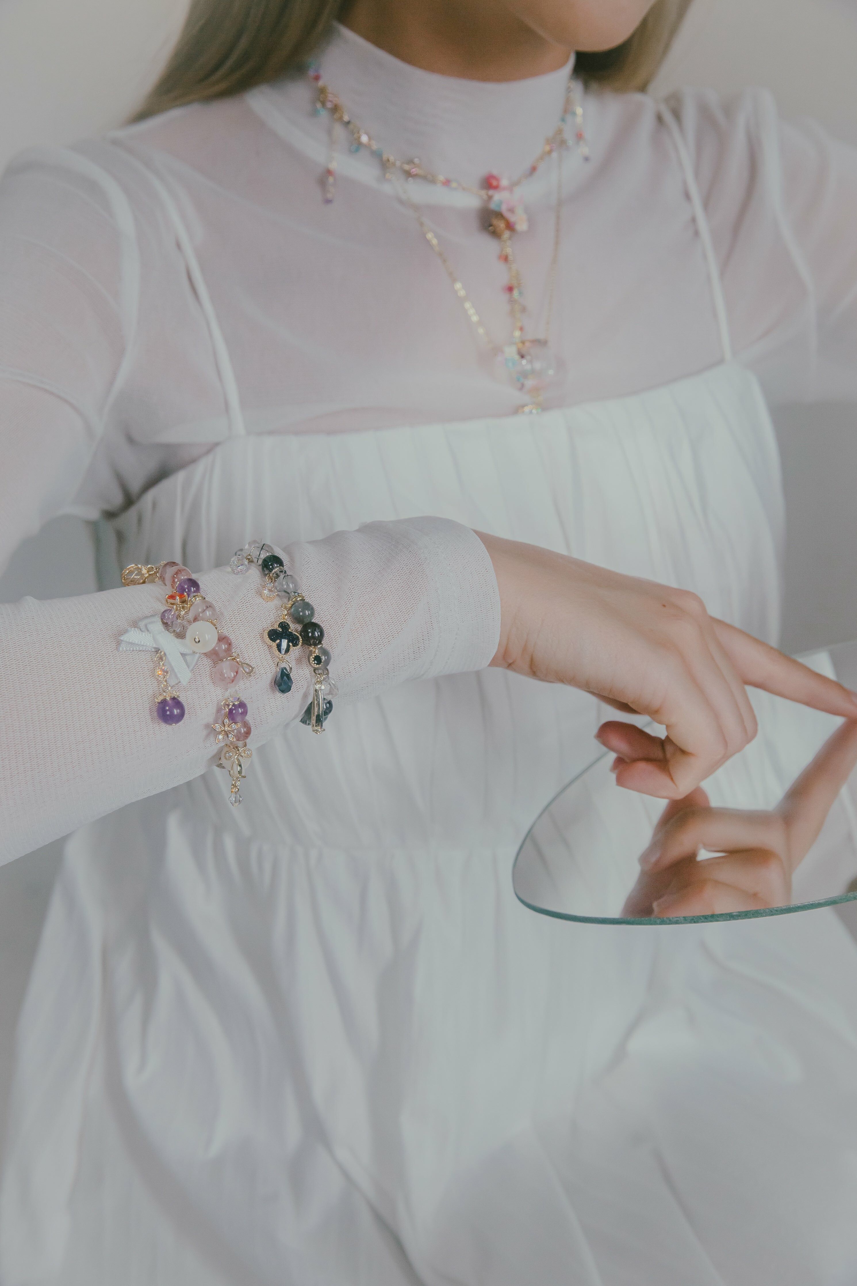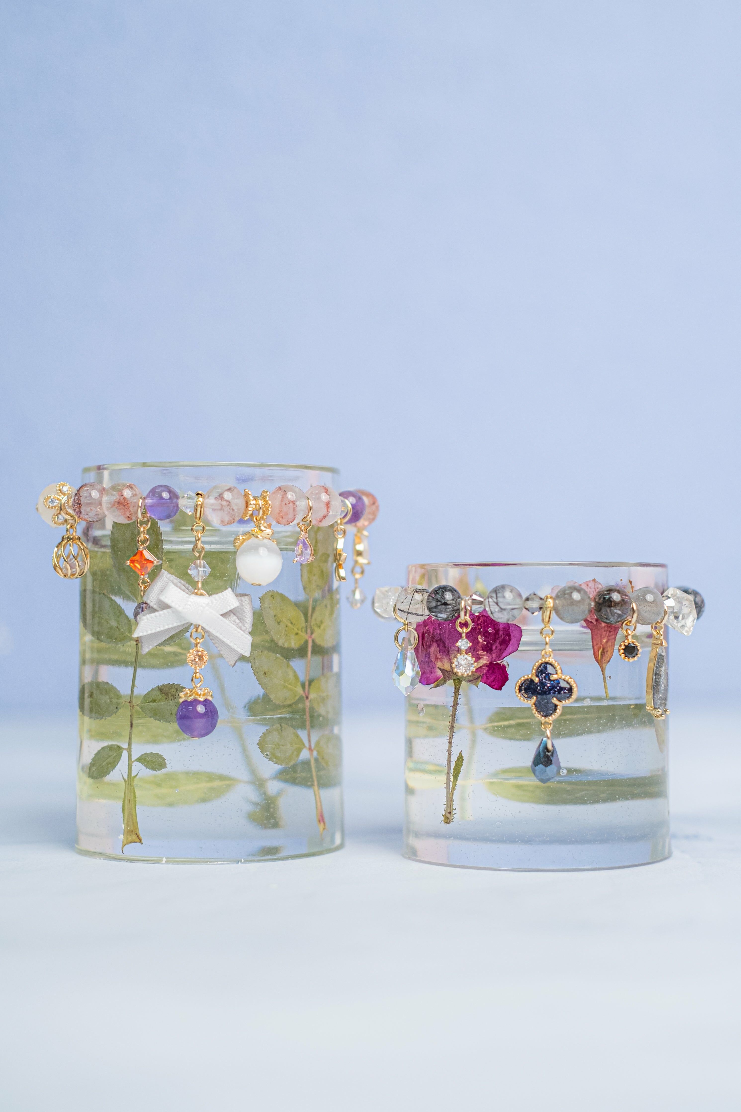 「你就是我,我就是你」,同生但異色的兩位雙生兒,一位溫柔可人,另一位帥氣魅人,兩條手晶手鏈均由天然水晶(超七 / 黑髮晶)配搭Swarovski水晶組合而成,雙重面向、雙重魅力,Why not?