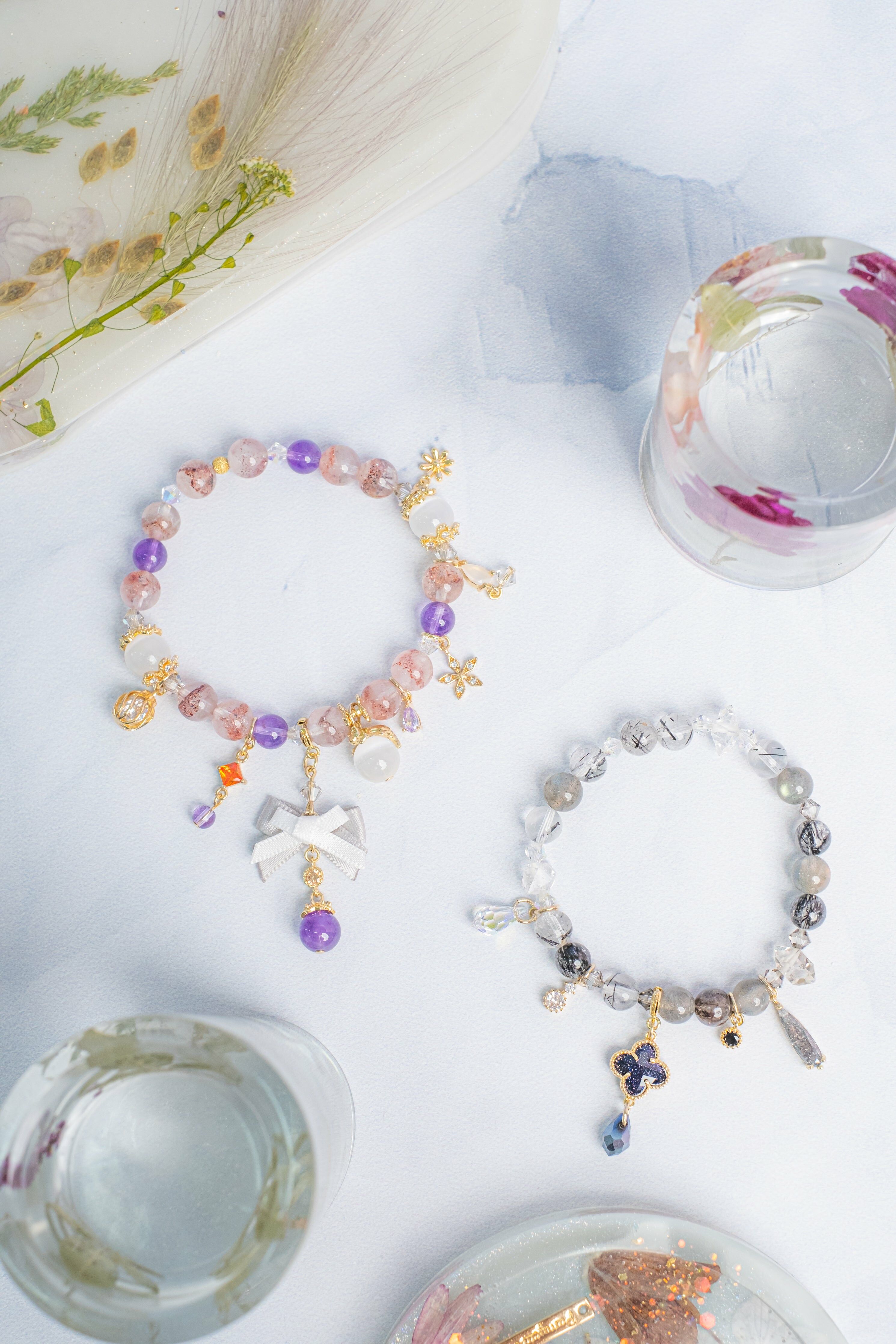 雙生兒異色水晶手鏈 (超七 / 黑髮晶)