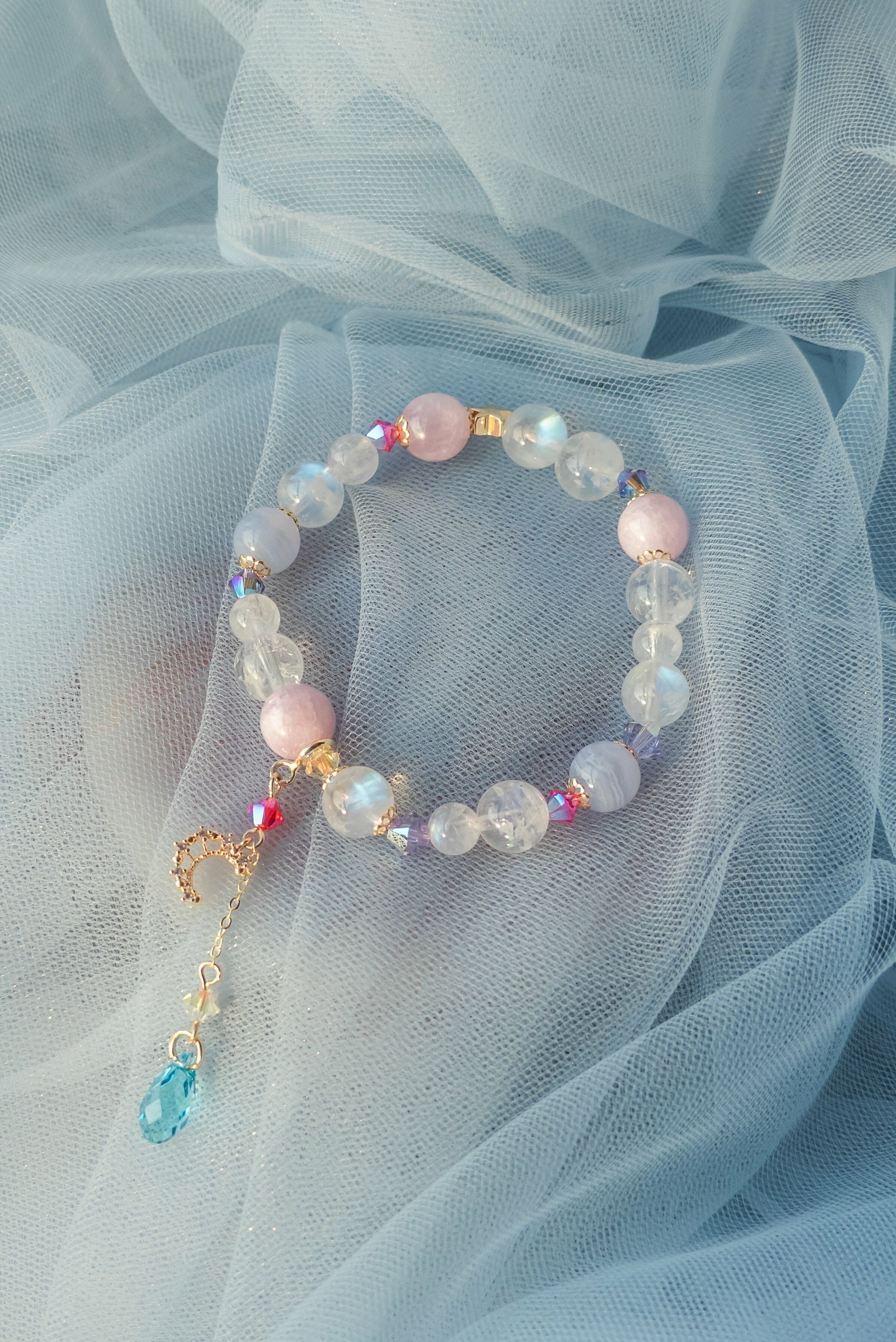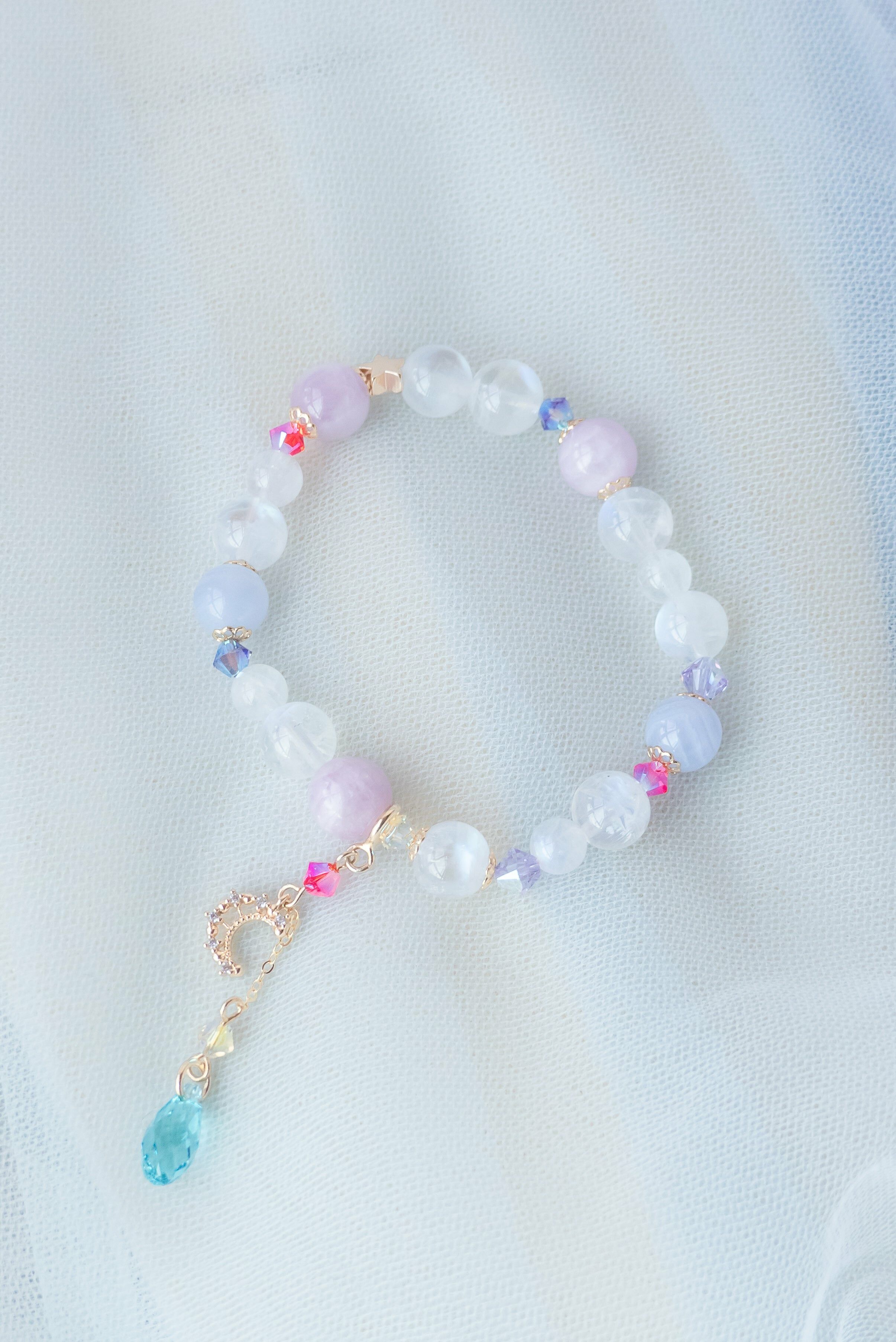 施華洛世奇水晶 | 藍光月亮石 | 藍紋瑪瑙 | 鍍14K金配件
