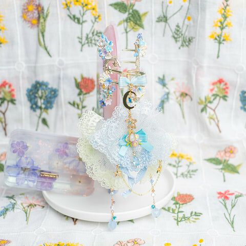 {𝟙} 湖藍星空鯊魚夾配可拆式蝴蝶結鴨嘴夾 HKD1780