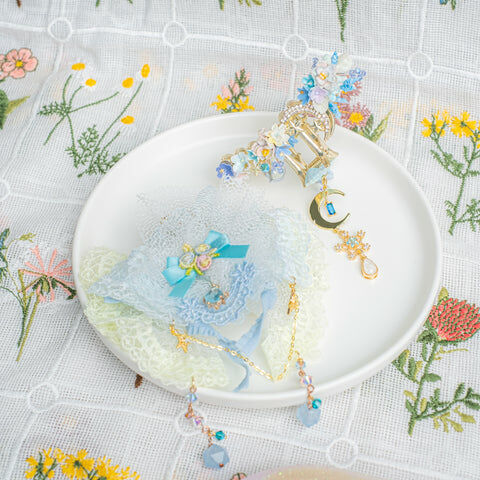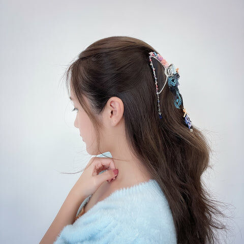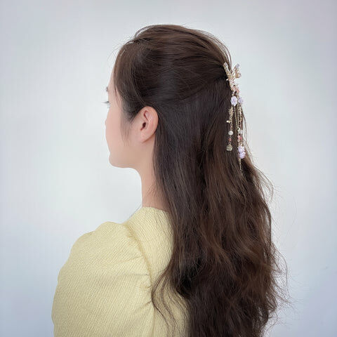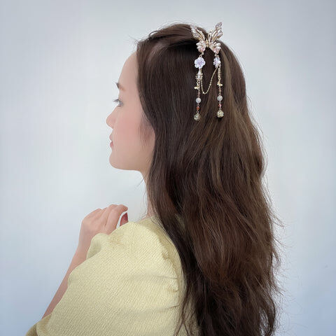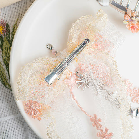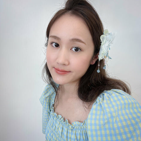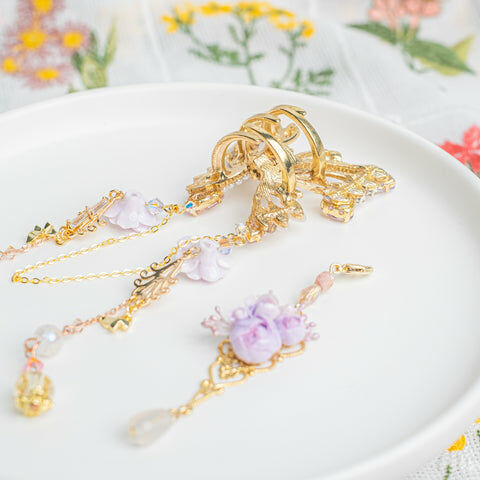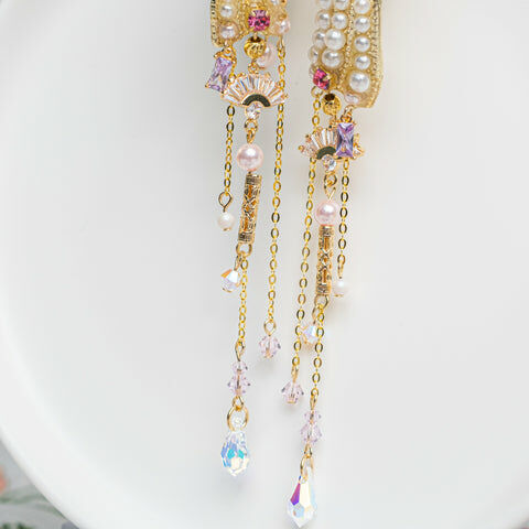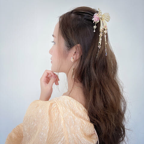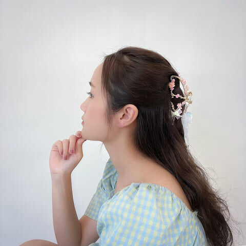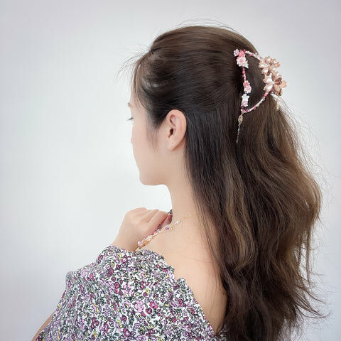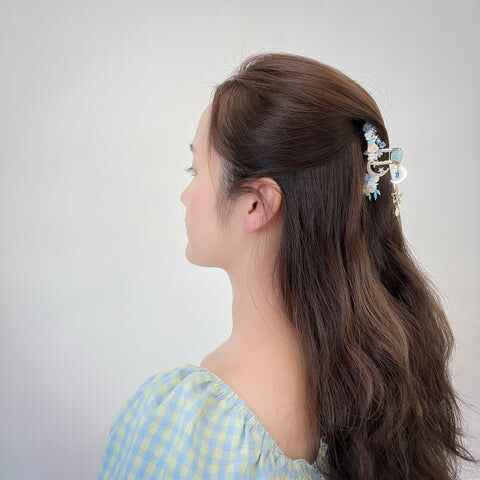 除了頭夾本身,下面吊飾的部份絕對是打造整體風格的重點。