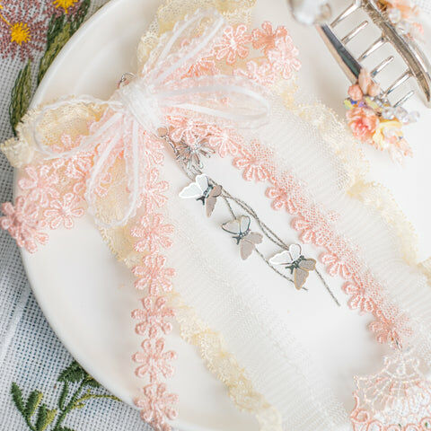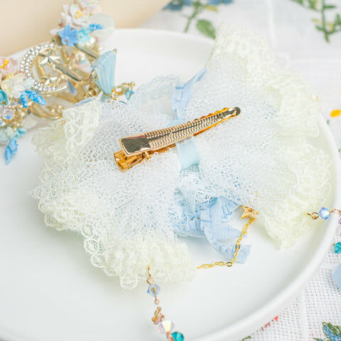 {𝟡} 藕白蕾絲鯊魚夾配可拆式蝴蝶結鴨嘴夾 HKD1780
