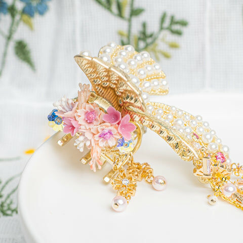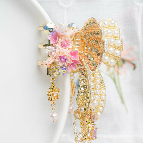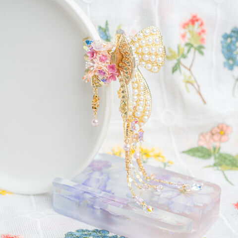 {𝟚} 蝴蝶珍珠鯊魚夾配可拆式蝴蝶結鴨嘴夾 HKD850