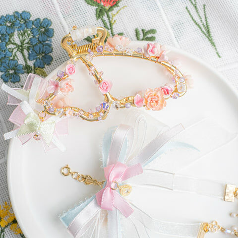 ⑩ Garden Girl Lace Ribbon Claw Clip (9 Designs)