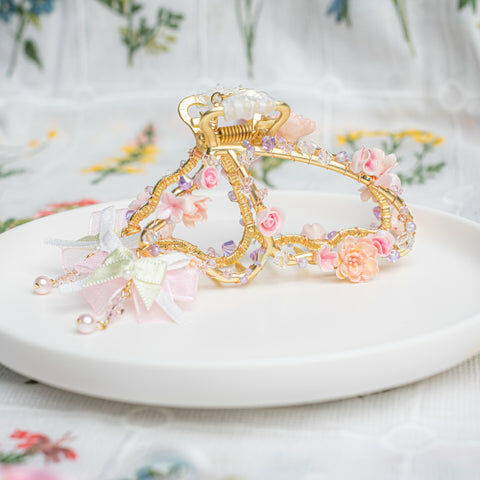 {𝟜} 夢幻法國薔薇鯊魚夾配可拆式蝴蝶結鴨嘴夾 HKD1980