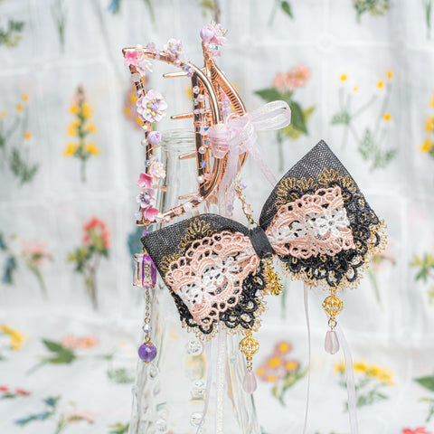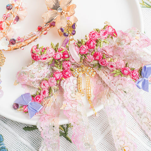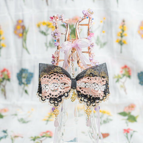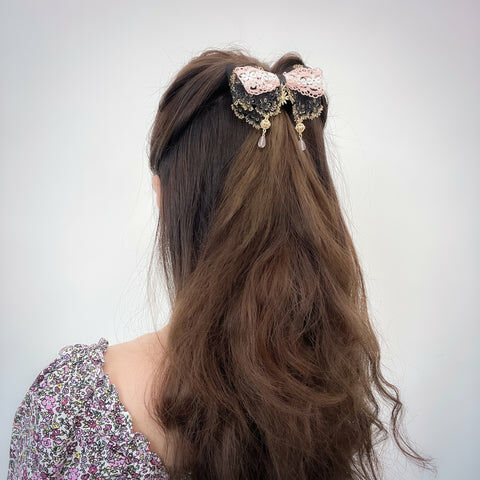 {𝟝} 櫻桃蕾絲玫瑰鯊魚夾配可拆式蝴蝶結鴨嘴夾 HKD2080