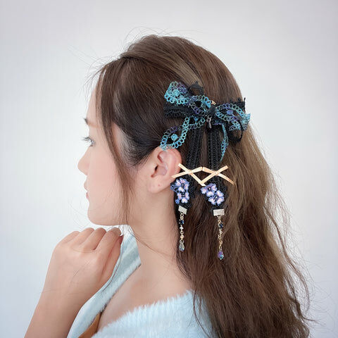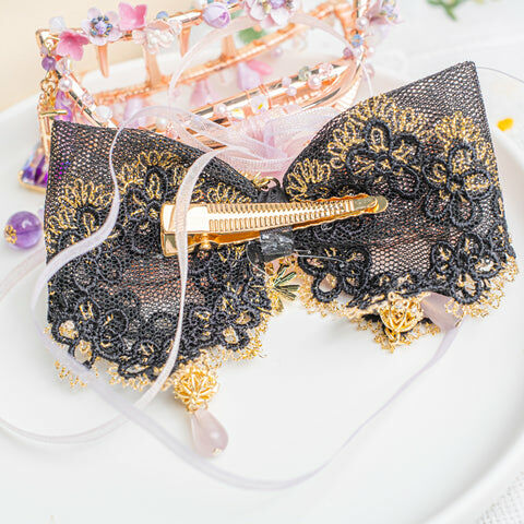 {𝟟} 黛紫蕾絲鯊魚夾配可拆式蝴蝶結鴨嘴夾 HKD1920