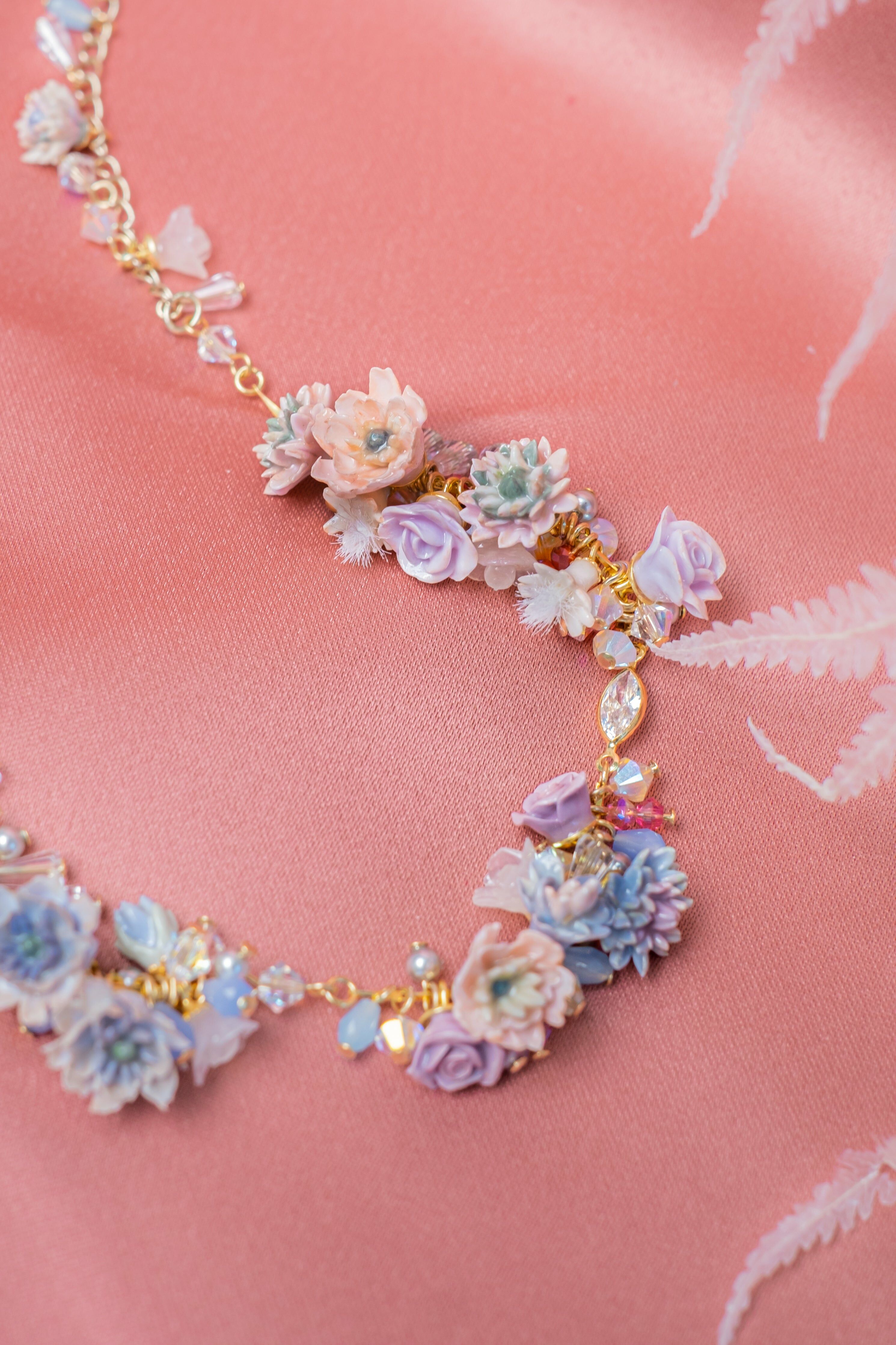 14K Gold-plated S925 Necklace | Swarovski Crystal | Handcrafted Cold Porcelain Flower | Hardening Resin Coating