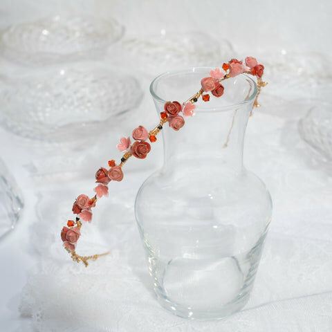 Gold Plated Artistic Wire | Swarovski Crystal Bead | Handcrafted Resin Clay Flower | UV Hardening Coating | Metal Hairband