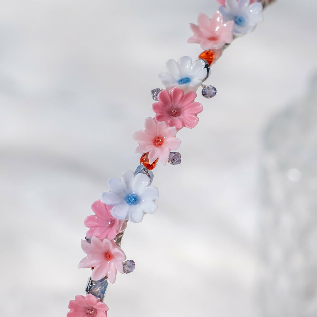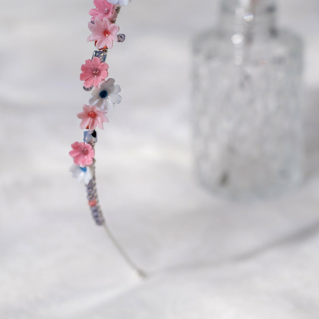 Gold Plated Artistic Wire | Swarovski Crystal Bead | Handcrafted Resin Clay Flower | UV Hardening Coating | Metal Hairband