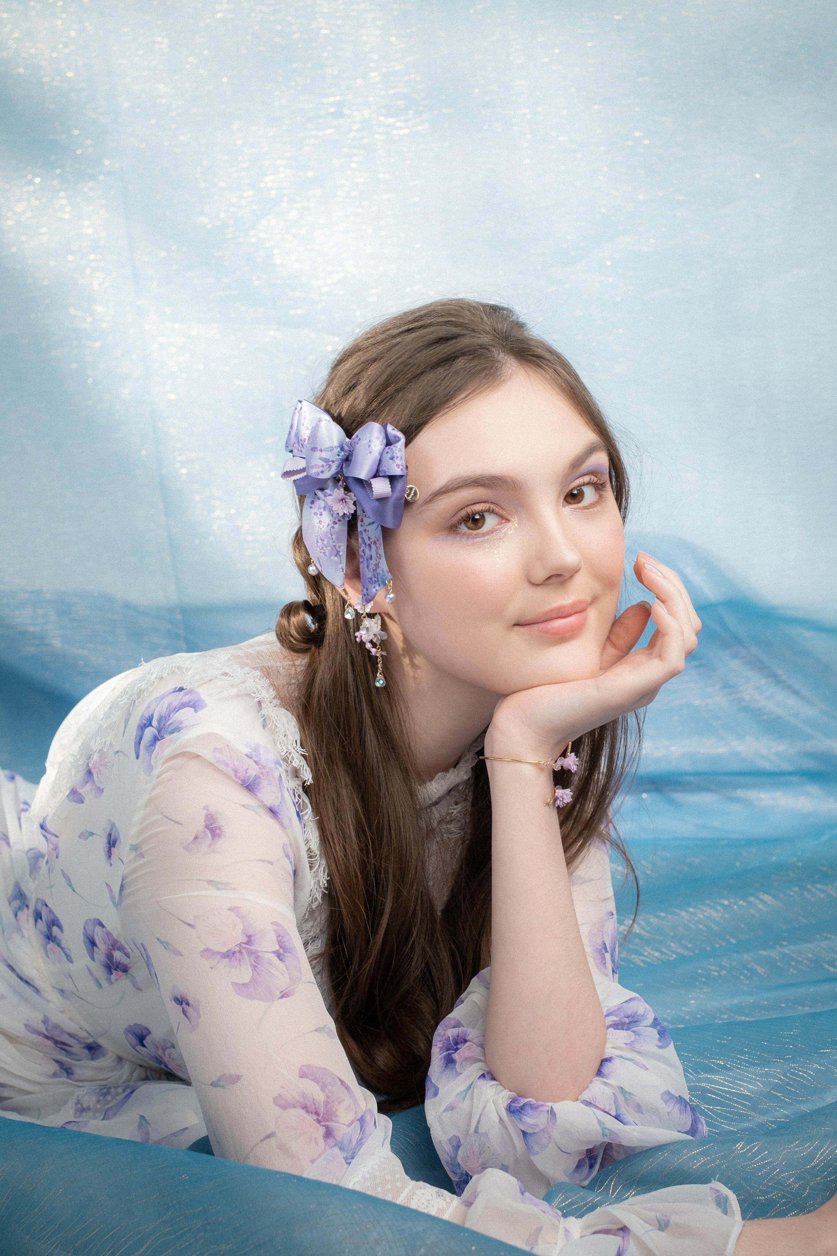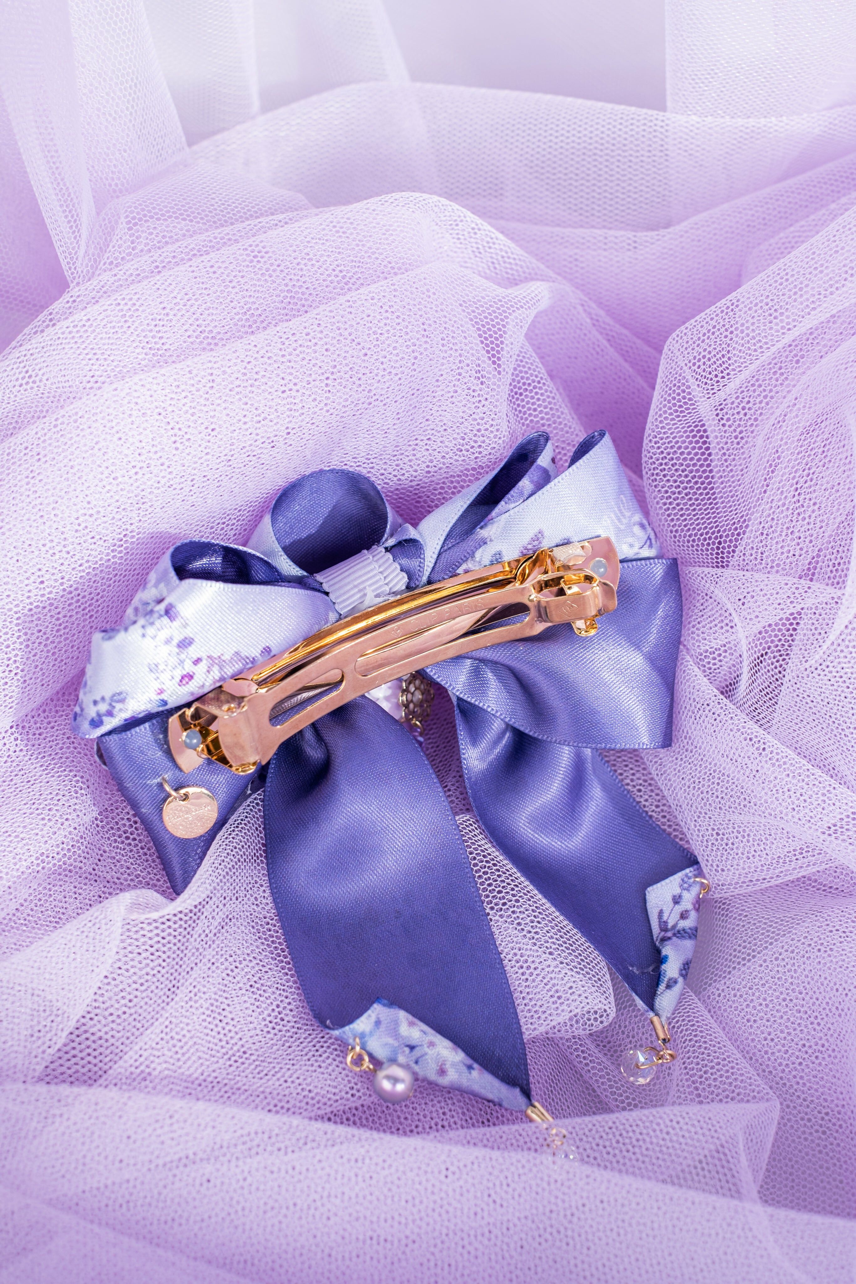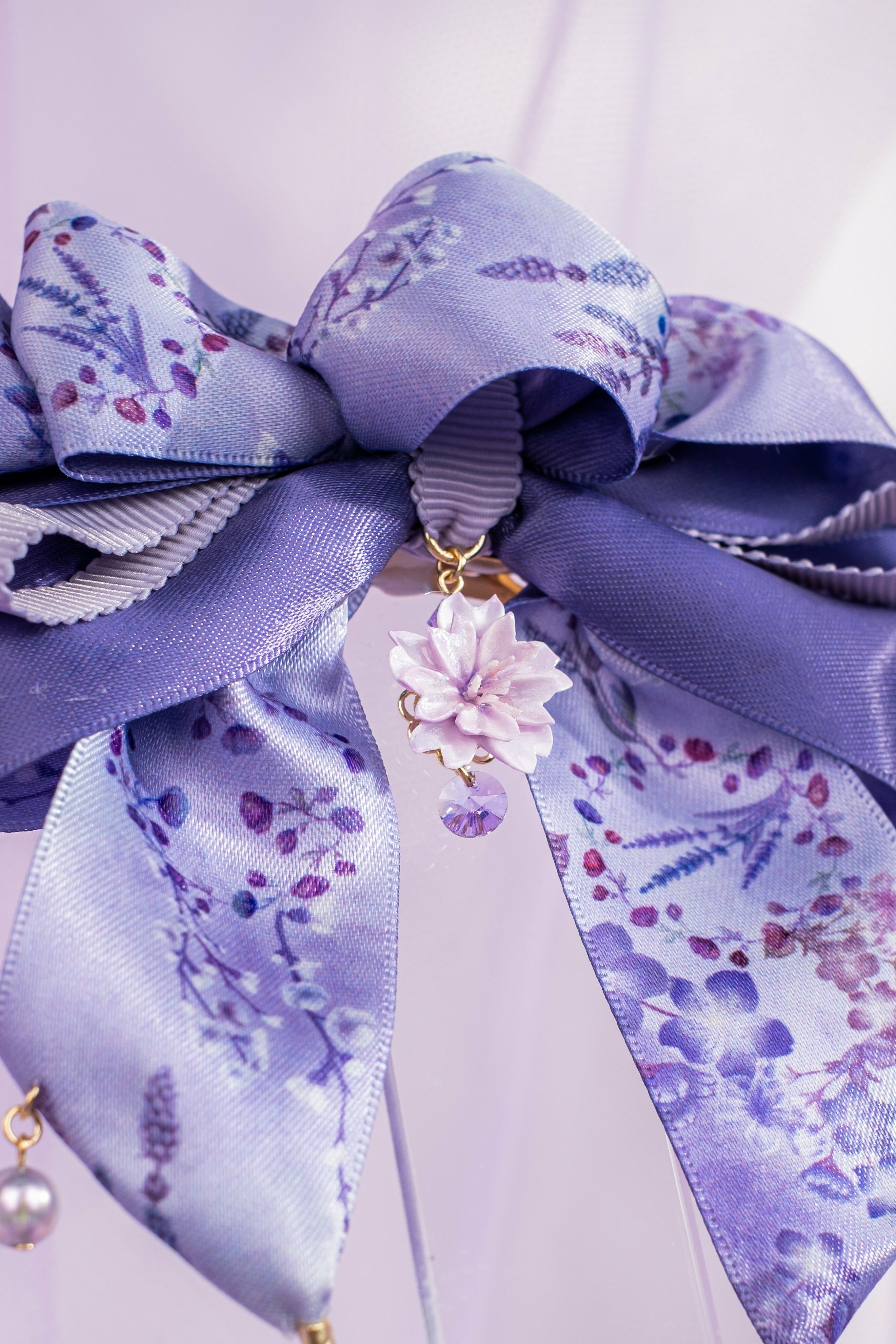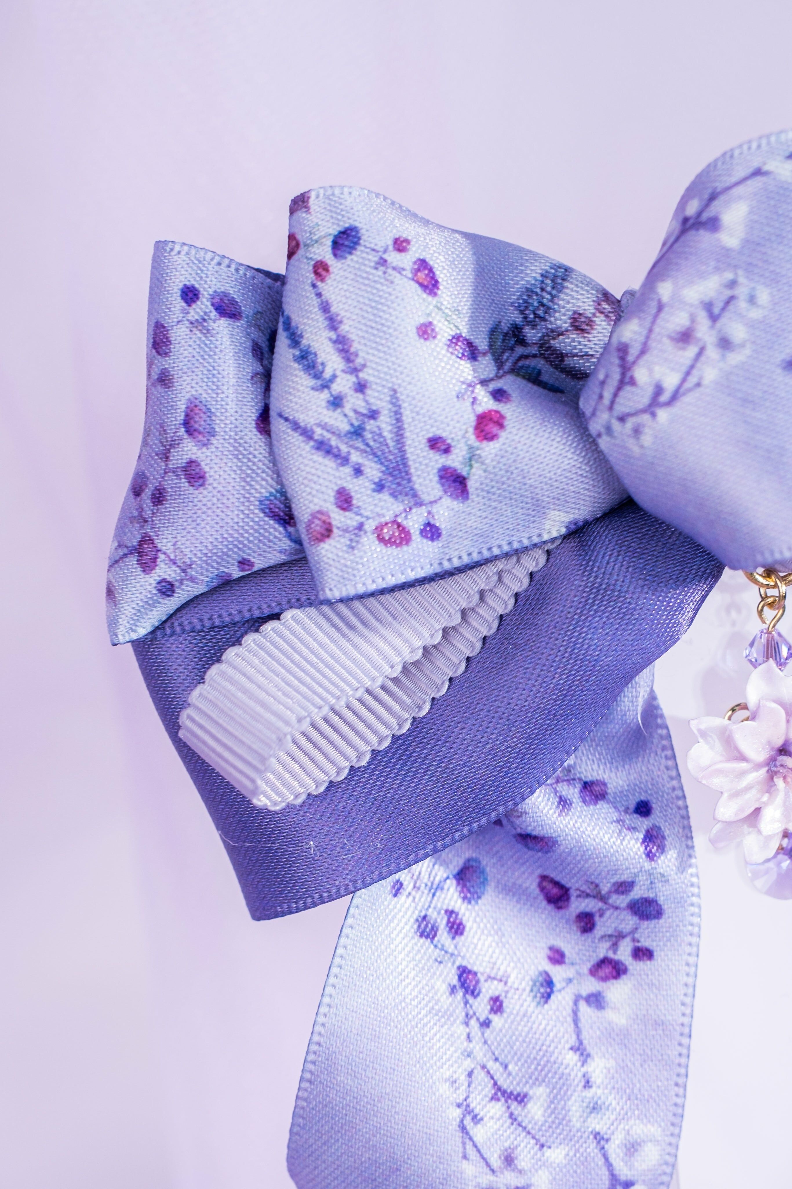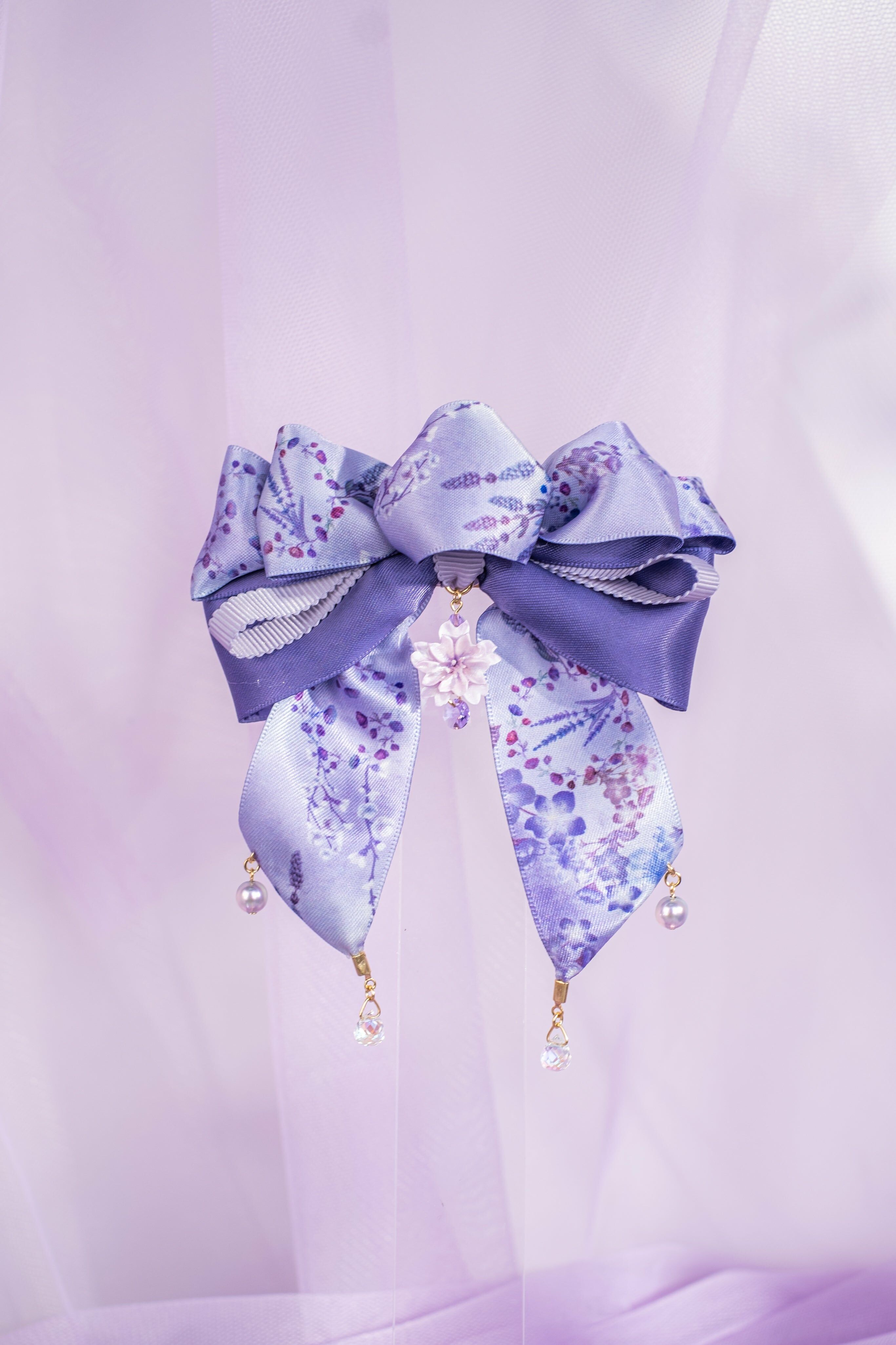 蜜語紫櫻圖騰緞帶蝴蝶結頭髮夾揉合了黏土花和布藝細工花的耳環,充份表現了日式美學。細工花是日本的傳統手藝,在和服配件及日本傳統頭飾中廣泛應用。細工花由工藝師全人手製作,想像鳥兒傲翔於天空的美麗羽翼,製作出這款鳳尾耳環。耳釘部份與細工花吊墜部份可分拆使用。