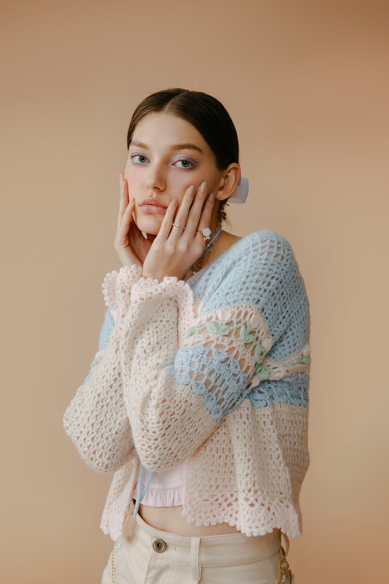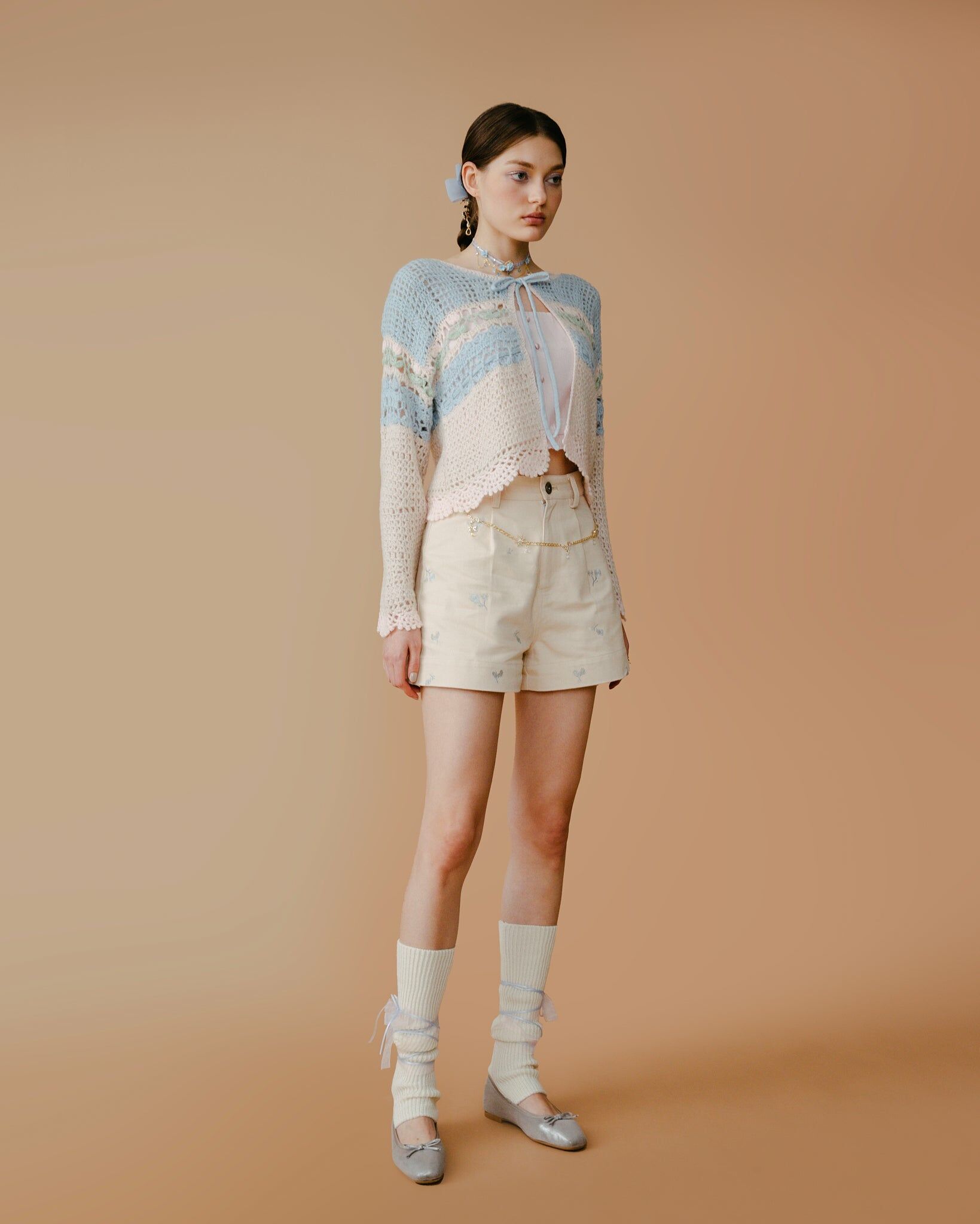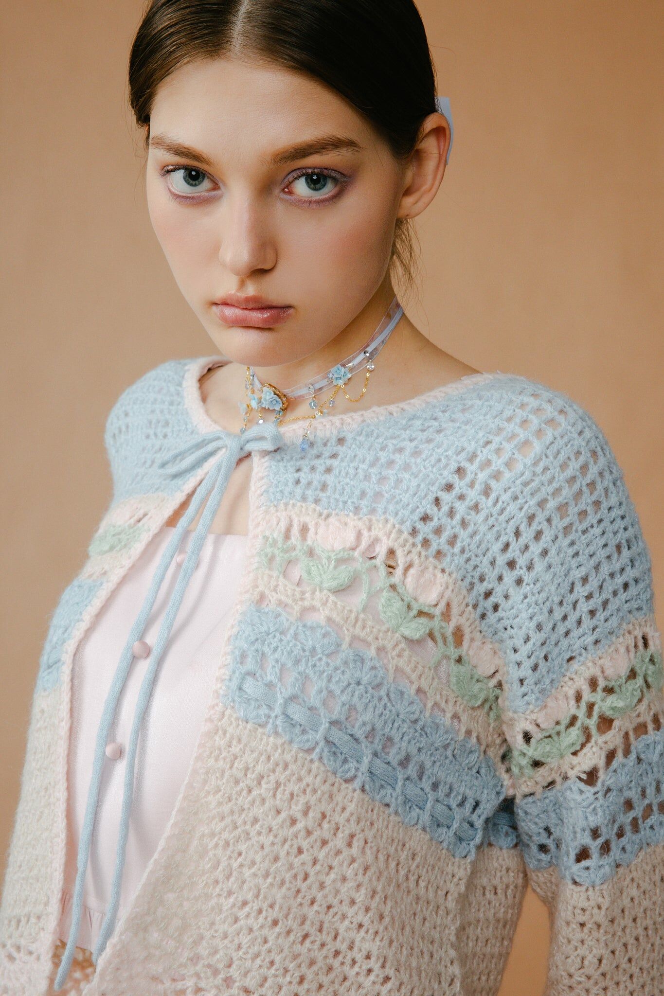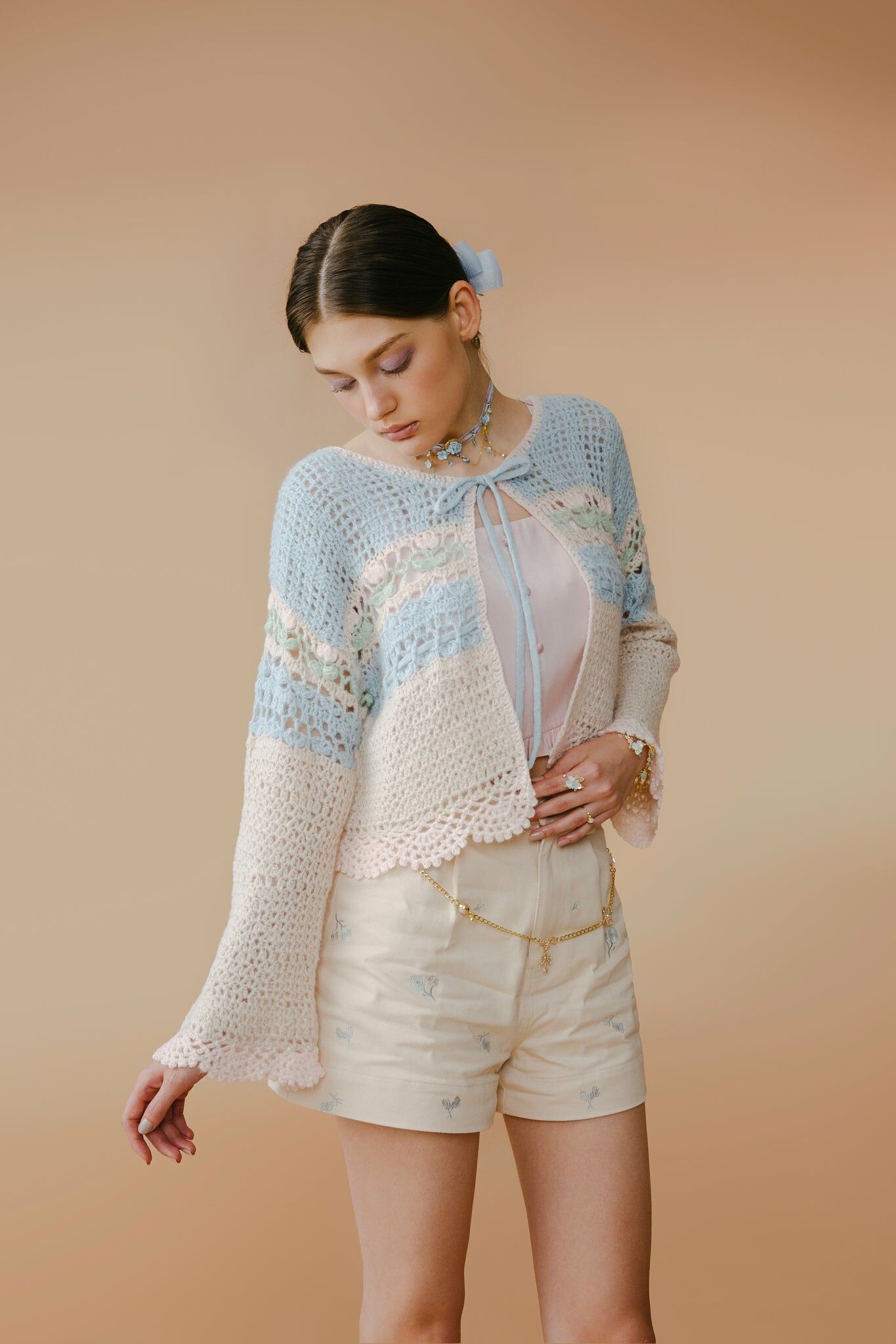 少女感滿滿!胸口前的綁帶蝴蝶結小細節立即將你變成甜姐兒。採用親膚毛料及喇叭袖設計,色彩活潑繽紛,輕巧方便帶出門,感受夏日花園感覺!也很適合作冷氣外套使用。