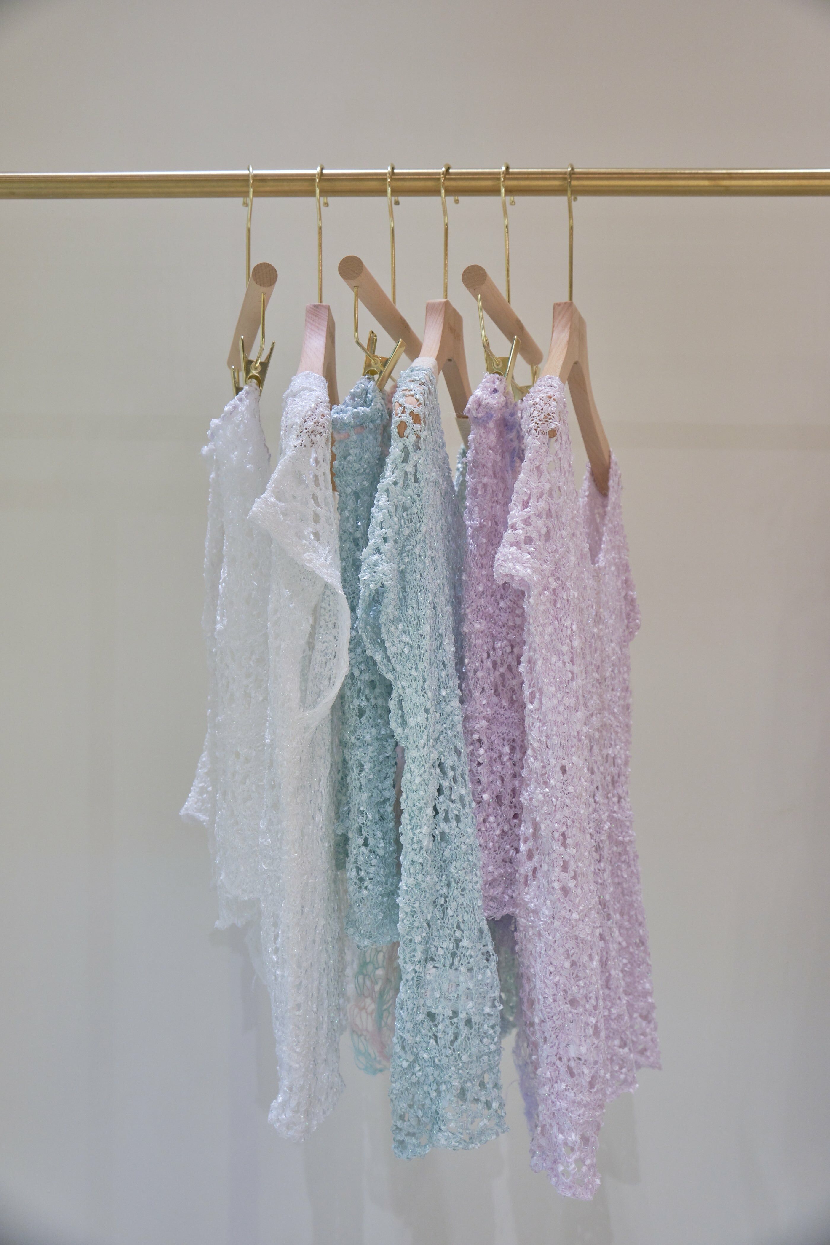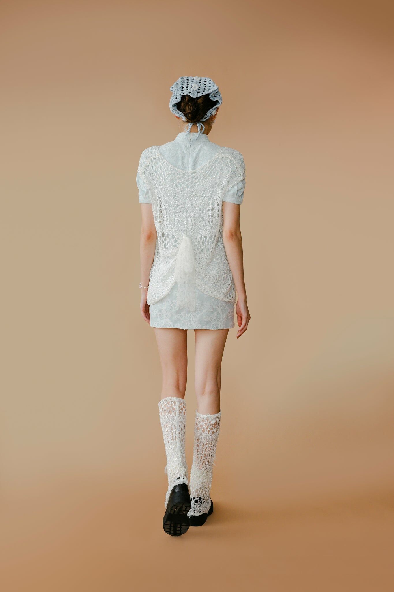 Hand-knitted Oversize Vest with Drawstring Ribbon (White/Purple/Lake)