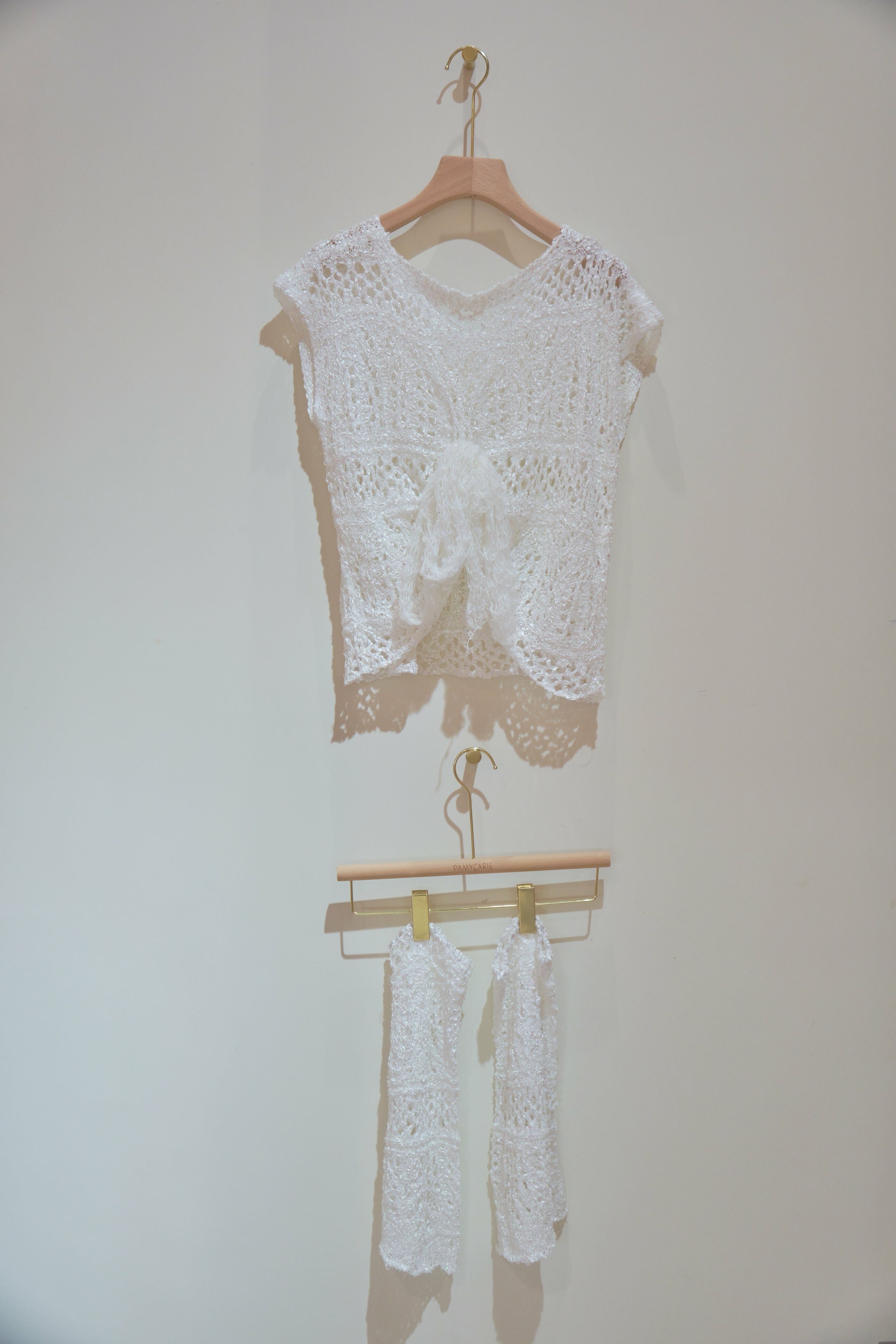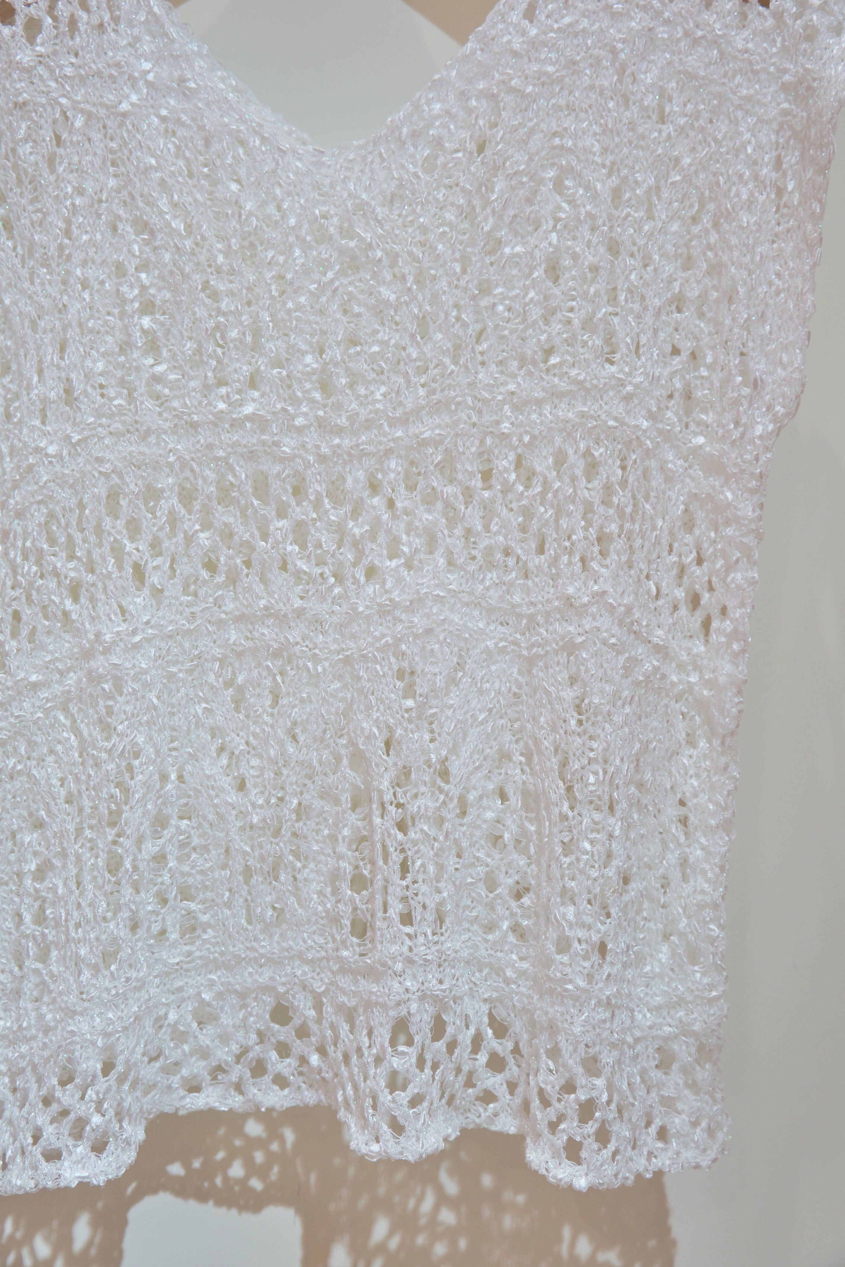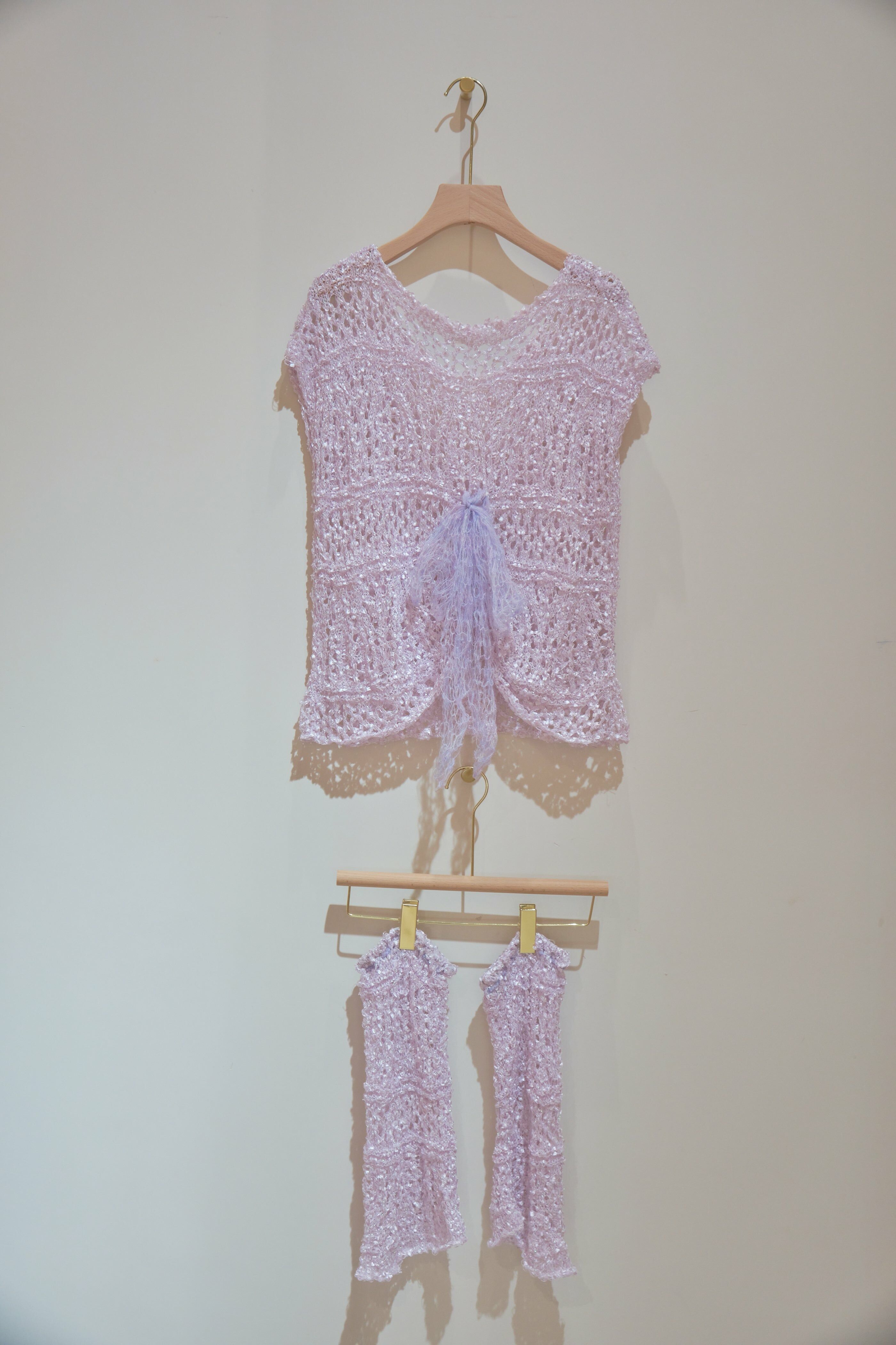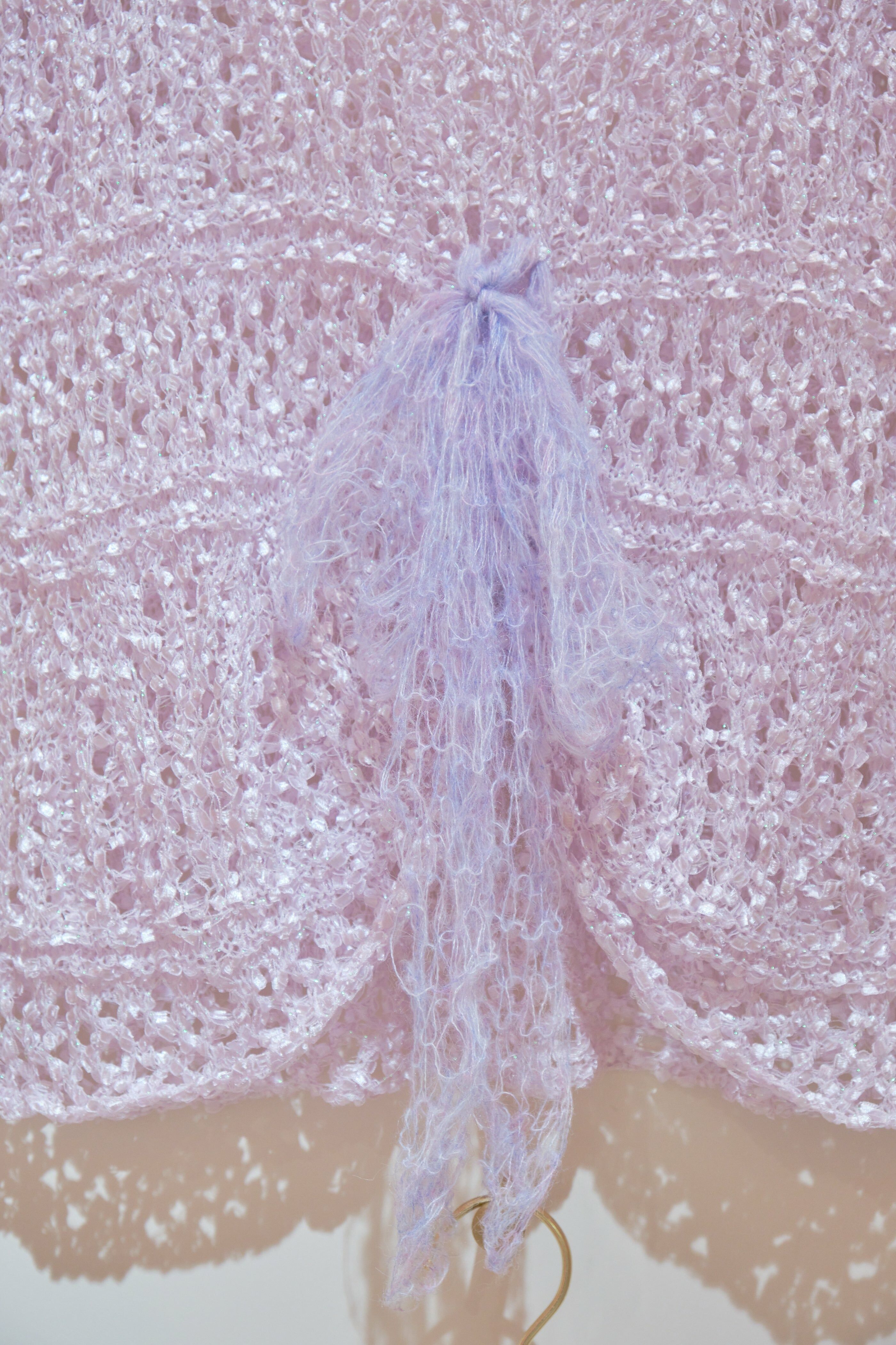 Hand-knitted Oversize Vest with Drawstring Ribbon (White/Purple/Lake)