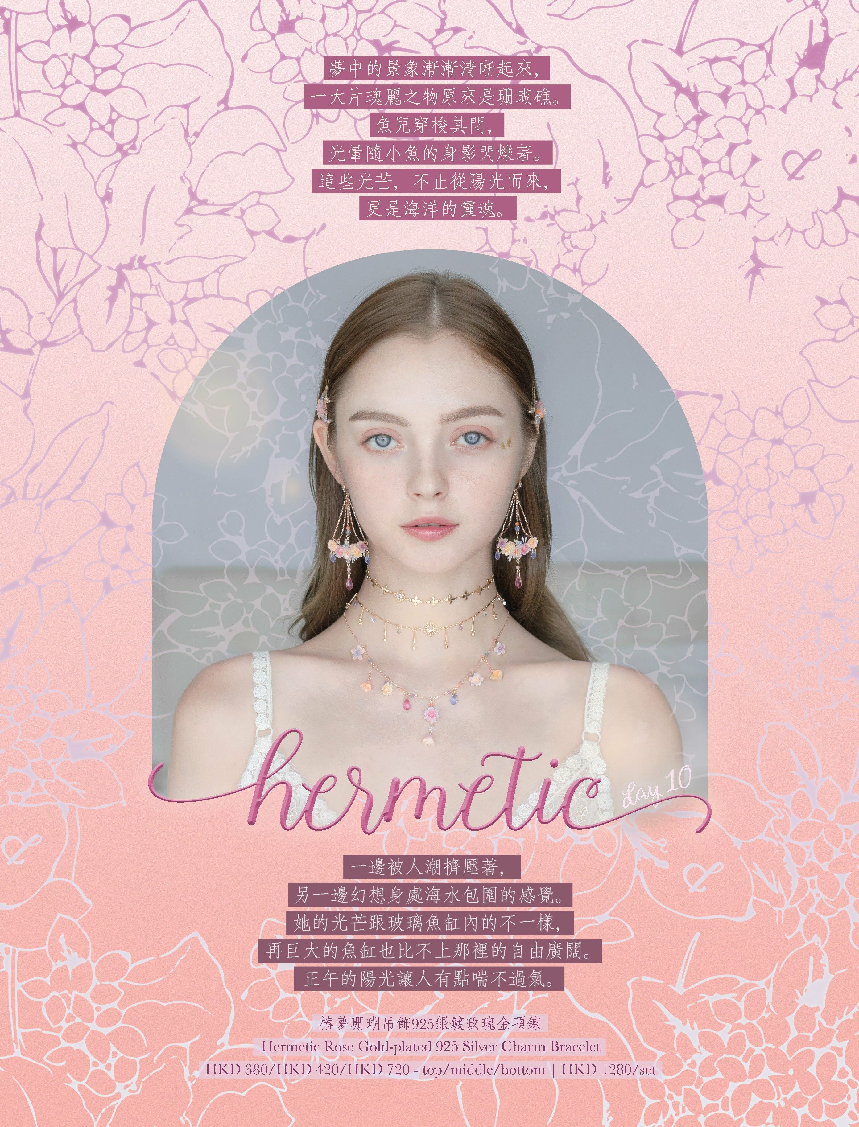 鍍玫瑰金銀線 | 奧地利水晶 | 奧地利水晶珍珠 | 紅紋石 | 太陽石(金草莓晶) | 手製樹脂黏土花 | UV膠強化保護層 | 鍍玫瑰金925純銀項鍊 | 鍍金項鍊