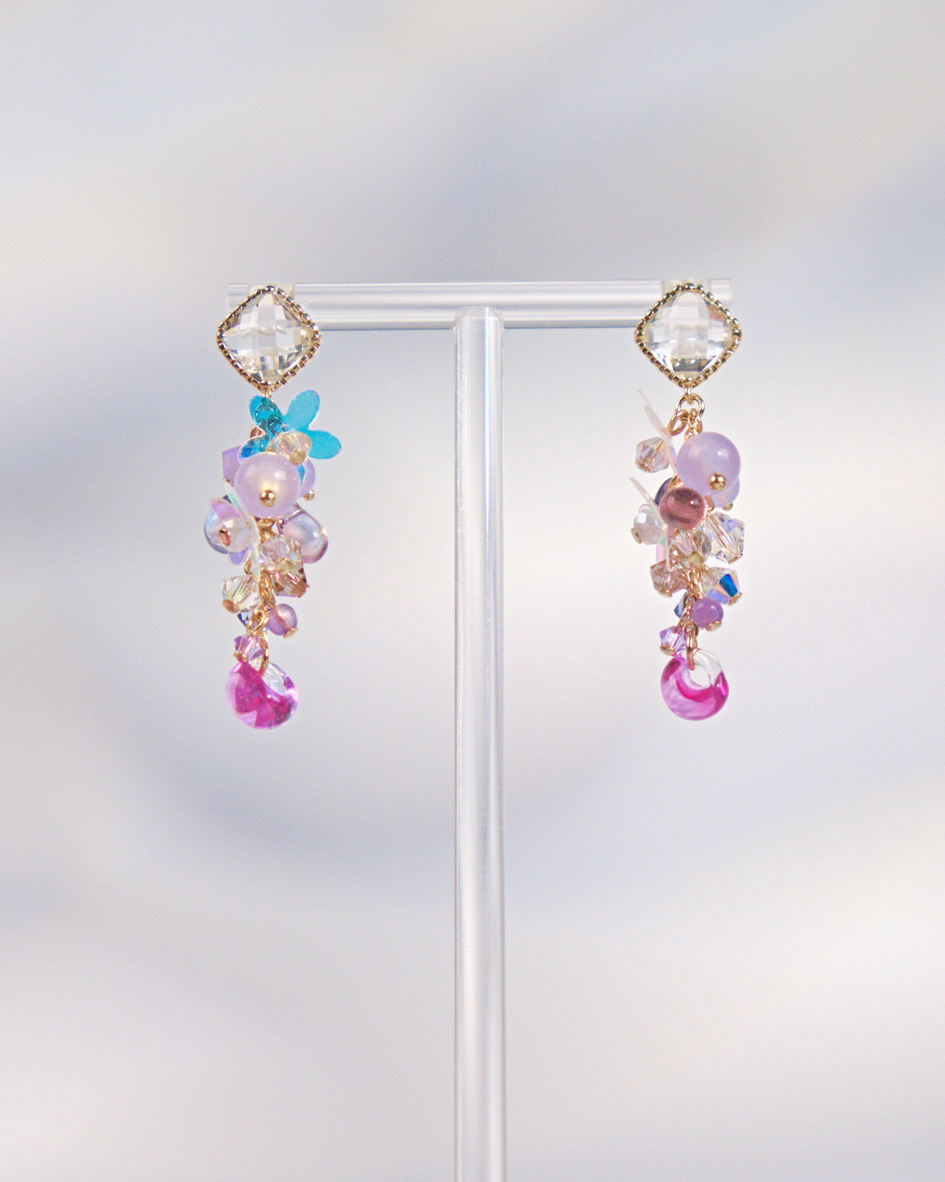 Swarovski Crystal | Natural Quartz | Japanese Glass Bead | Silver-plated Ornament | S925 Ear Stud