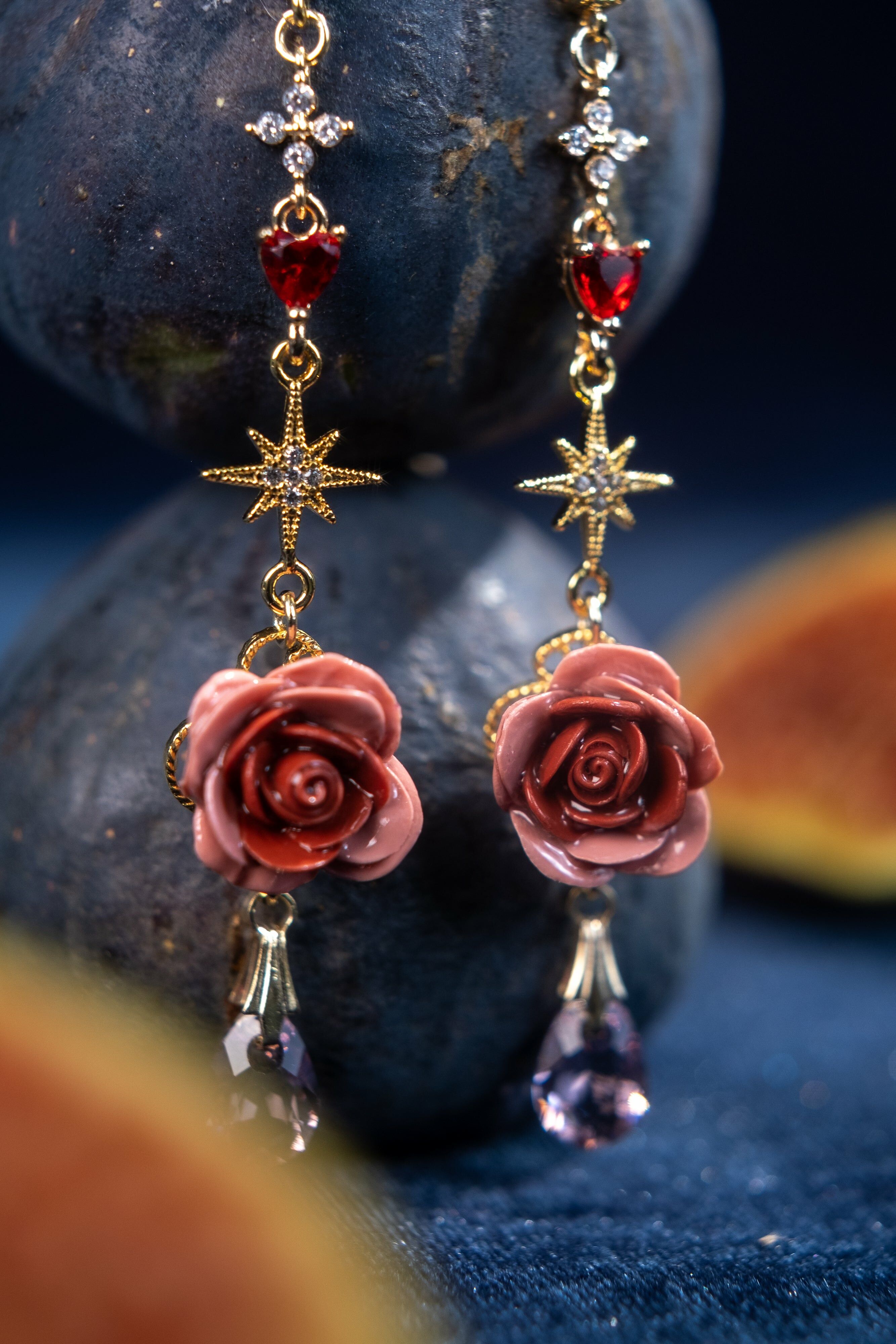 Gold-Plated Metal S925 Earrings | Handcrafted Resin Flower | UV Resin Hardening Coating | Swarovski Crystal