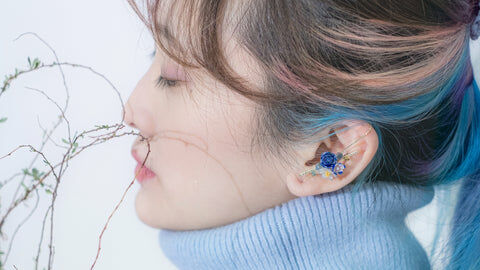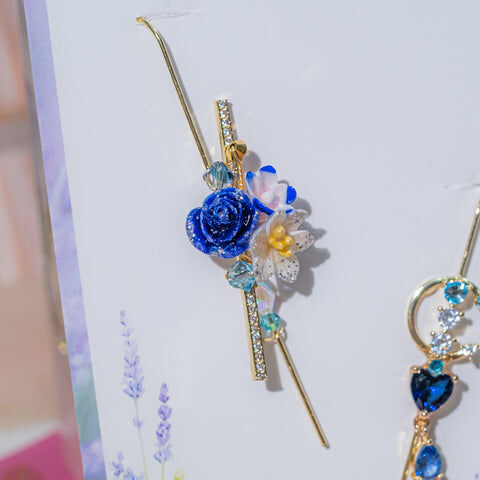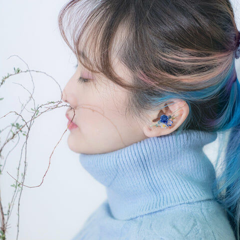 1 ❅ 藍玫瑰聖誕花S925鍍金針式耳環