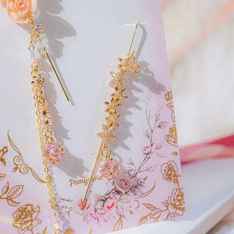 2 ❅ 櫻花玫瑰S925鍍金針式耳環