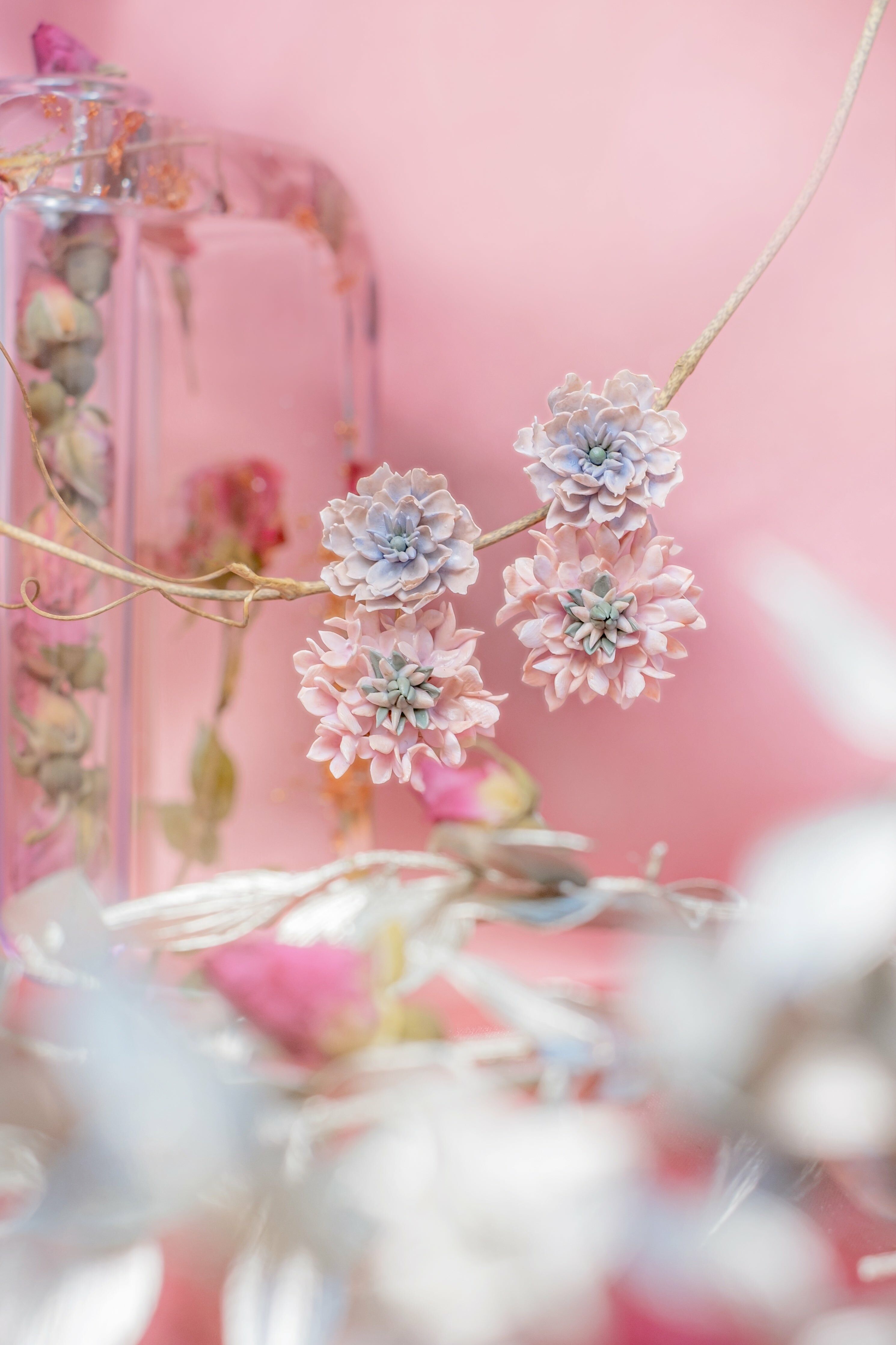 Pamycarie 冬季系列以大家心底裡那一抺寂寞作為靈感,設計出一系列乾燥色調的花系飾物。矢車菊(Centaurea)、蜀葵與玫瑰作為主題花,象徵著我們勇於去愛、堅持與被治癒,用不同角度刻畫出糾纏不清的愛與孤獨感。