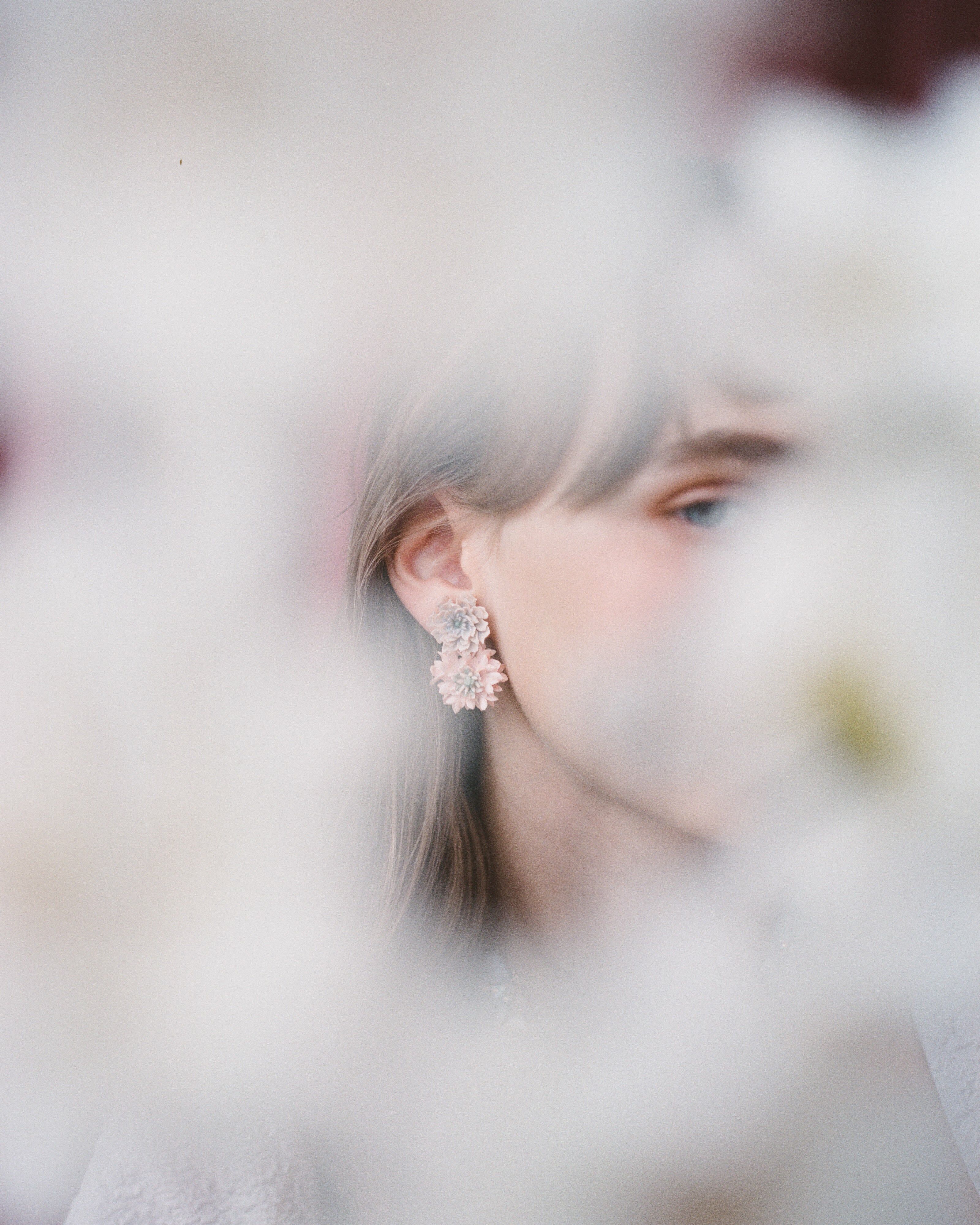 鍍14K金S925耳針 | 手製樹脂黏土花朵 | 強化樹脂保護層