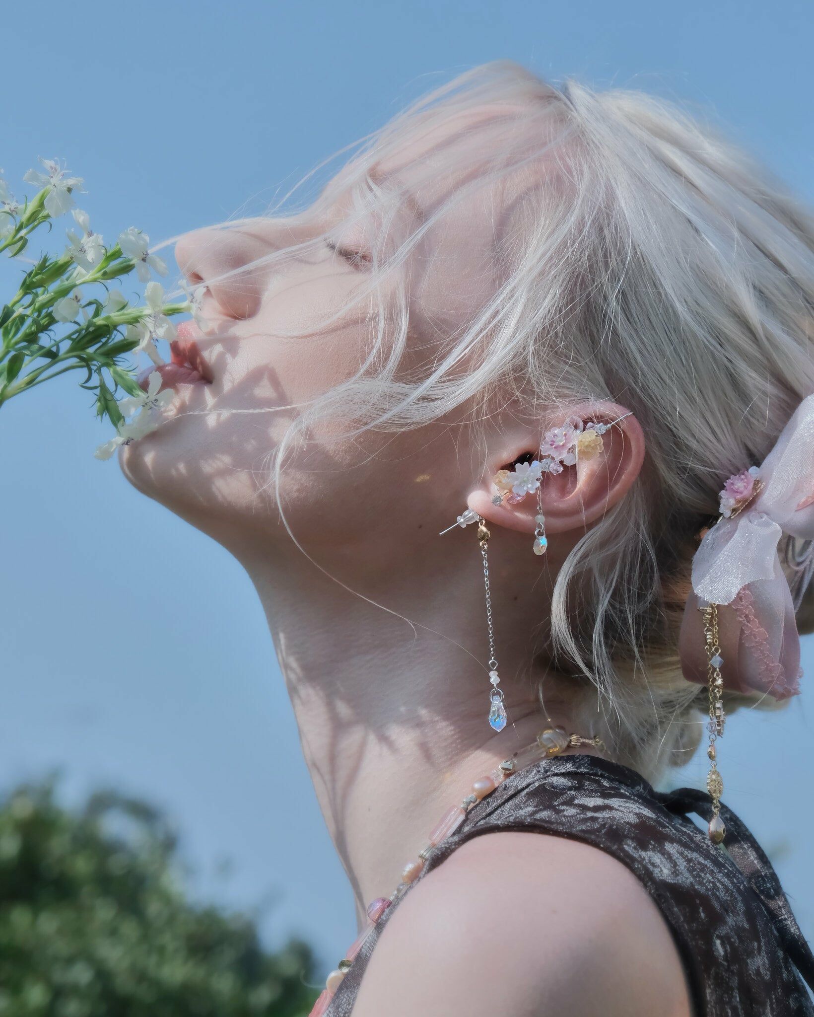 In the 2023 flower season of sakuras, Pamycarie sincerely hopes that everyone could experience the heart leaps and insecurities when having a crush. Sometimes we are unsure about presenting our true selves, at other times we desire to be as lucid as we could. Inspired by such complex feelings, Pamycarie creates the translucent sakuras in contrast to the pink and white sakuras, which imply the depiction of real and surreal. Novel designs have also enriched the visual impact of the collection, such as the hand-drawn sakura azure globule, organdy and wire-wrapped flowers, not to mention the playful seed bead choker. May the sakuras accompany you as always, no matter if you could solve the riddles.