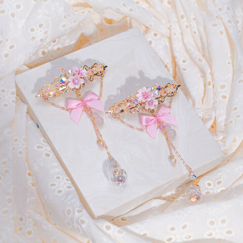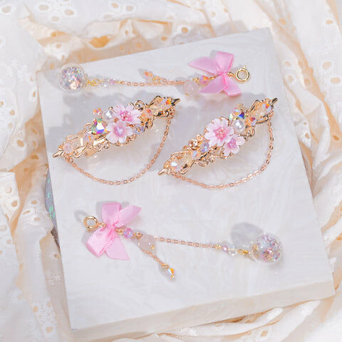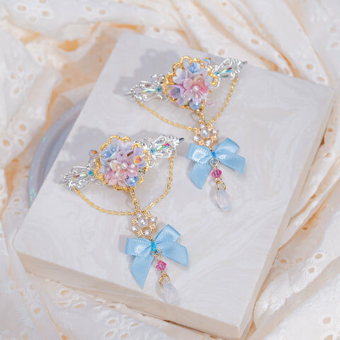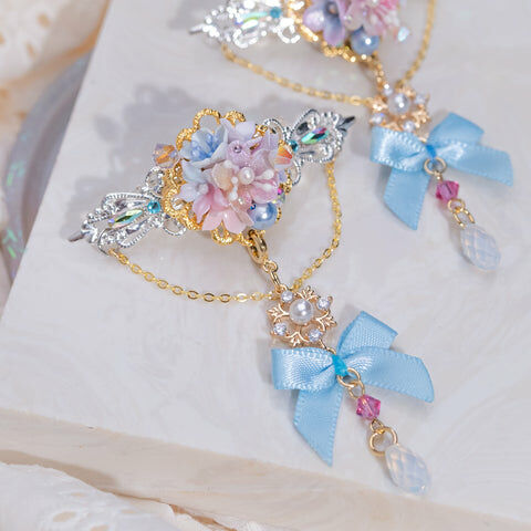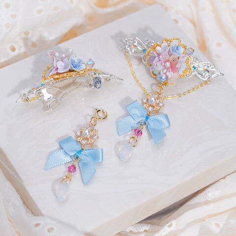 Design 6 - 草莓花文冠果粉藍蝴蝶結2-way髮夾套裝