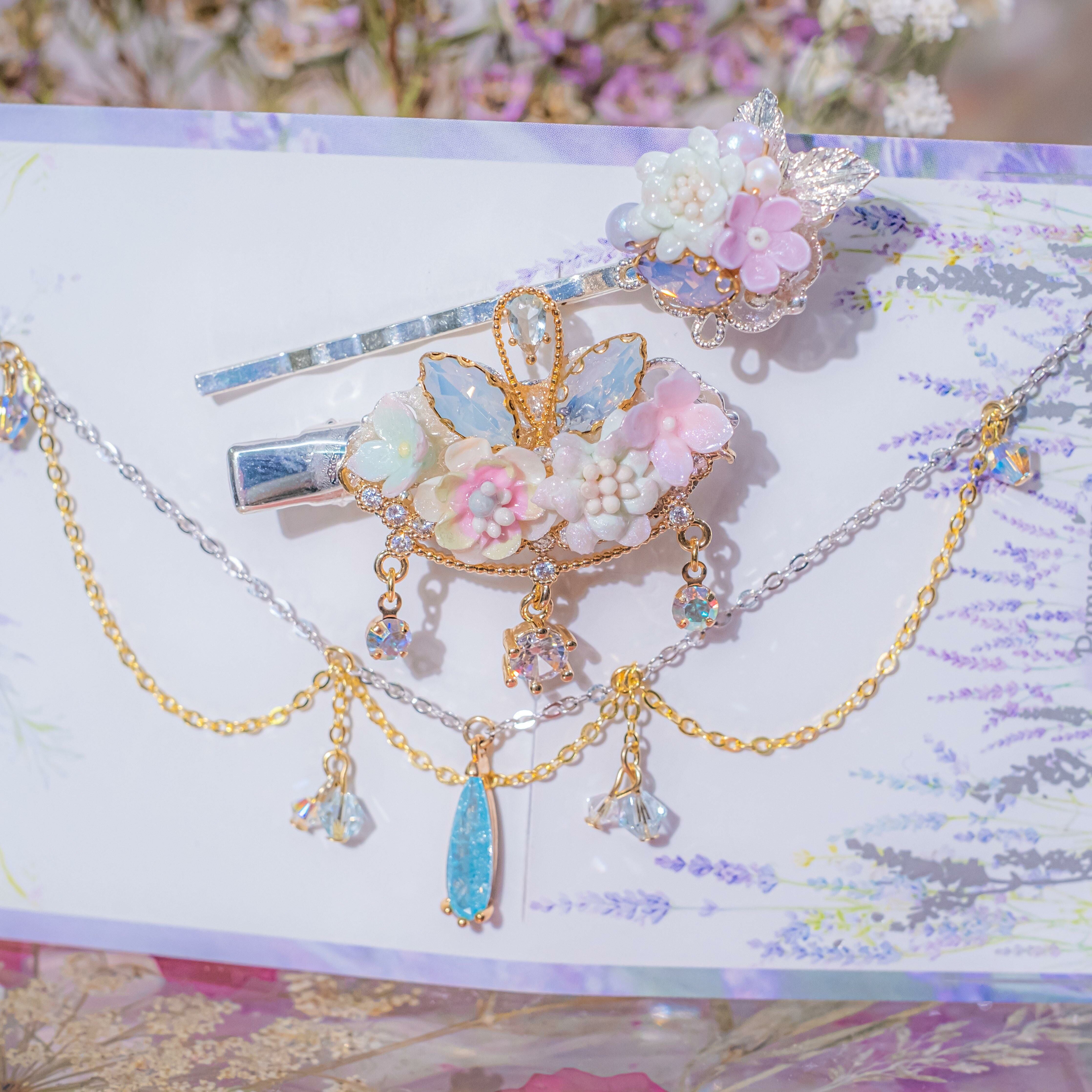 2 ❅ 獨角獸紫羅蘭鍍銀髮飾鏈4件套裝