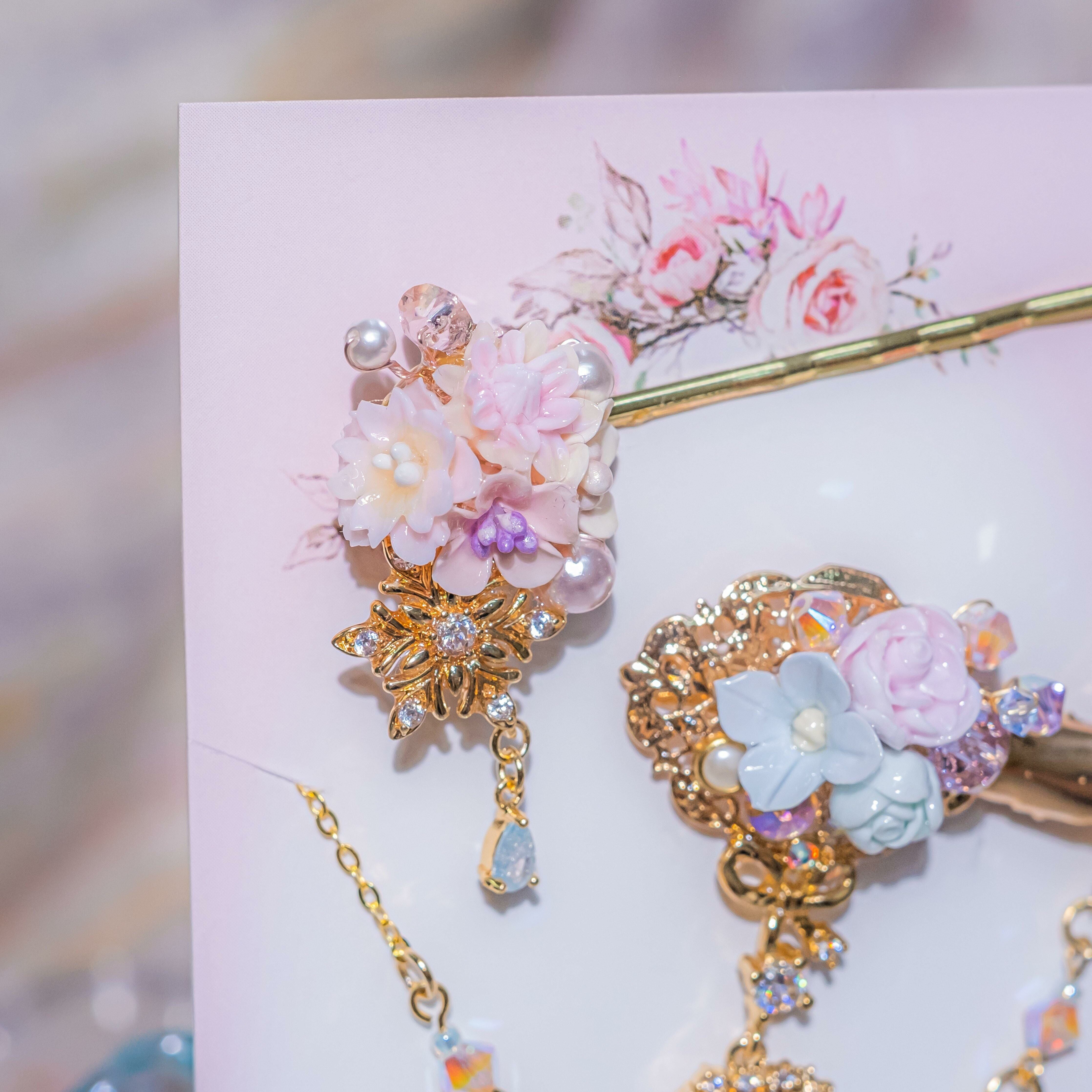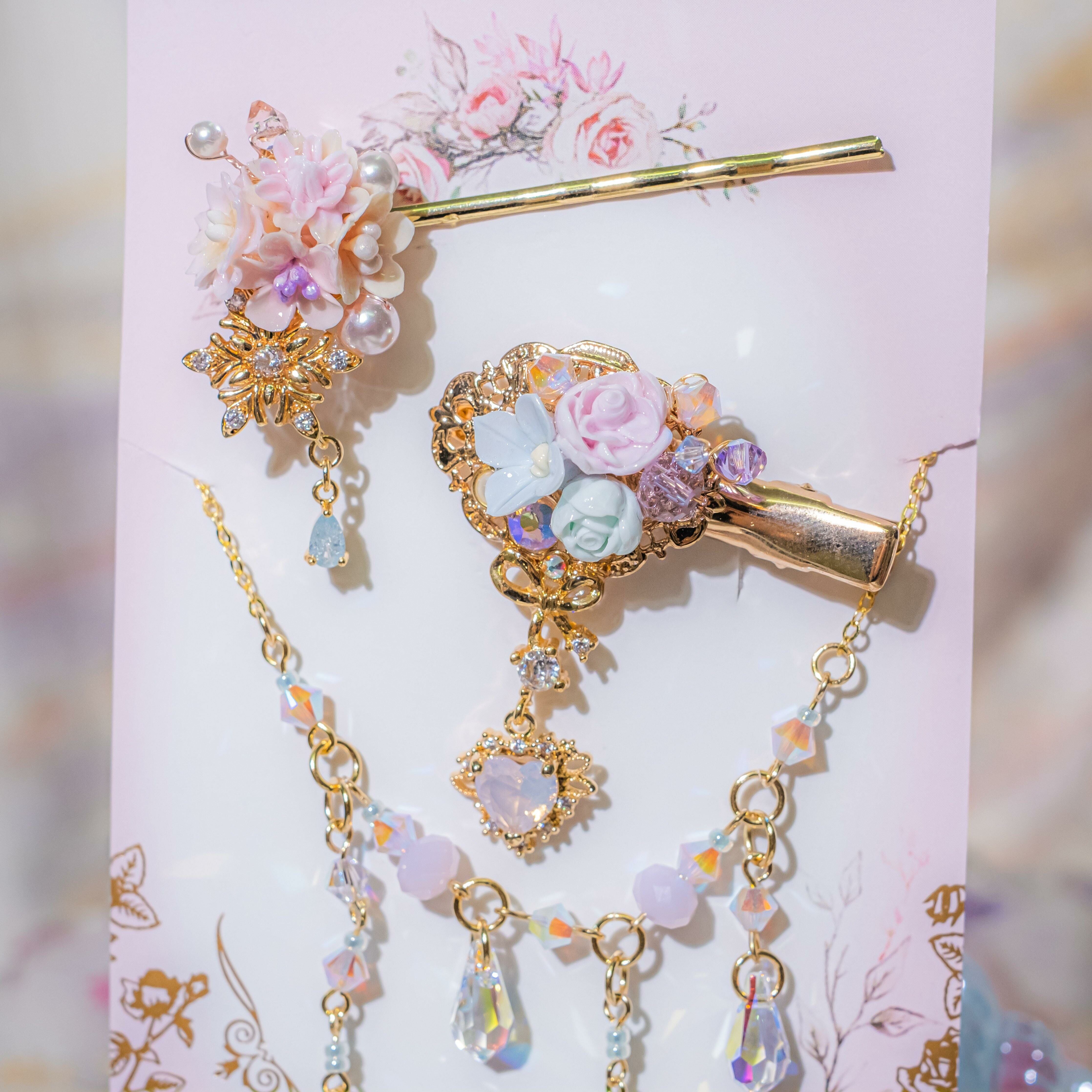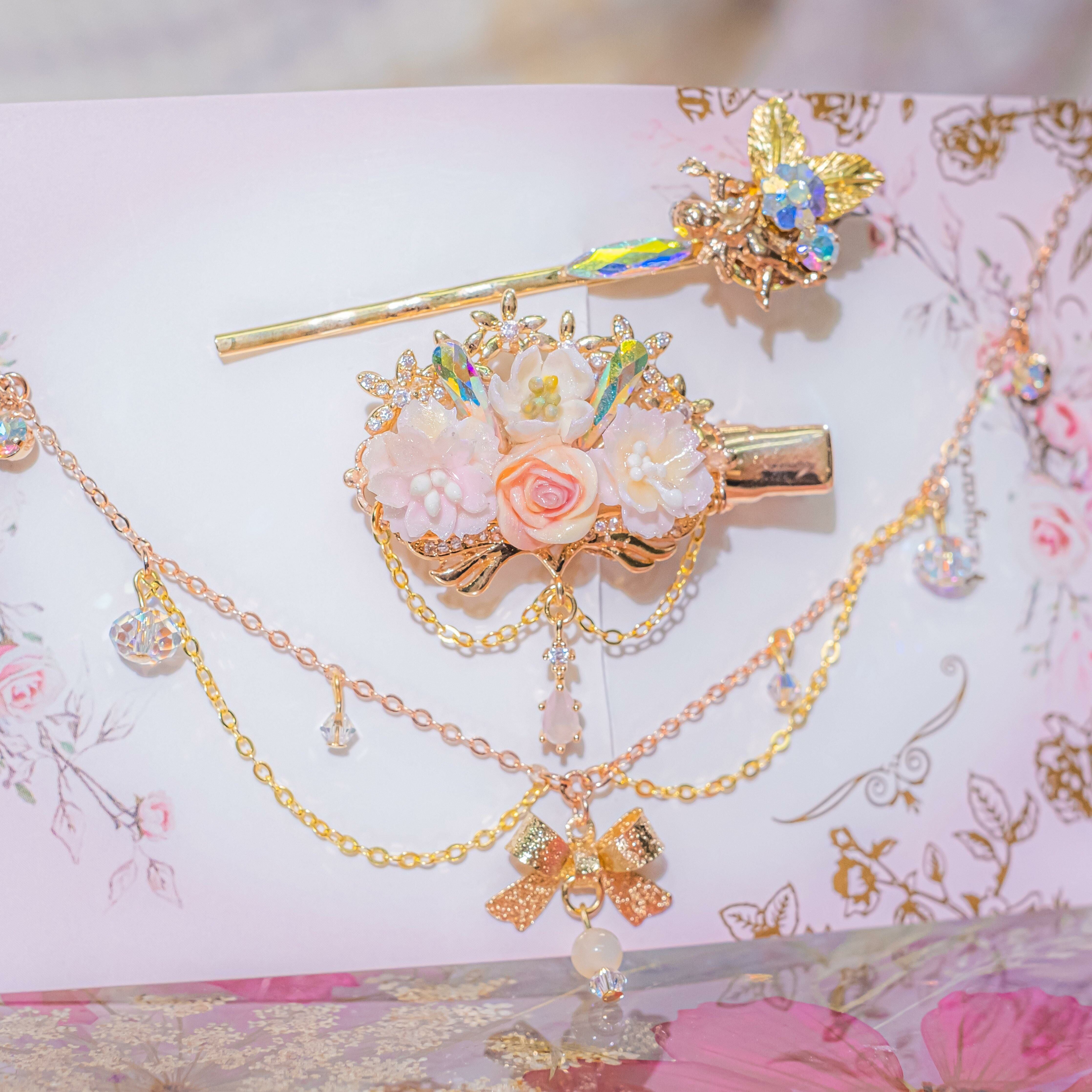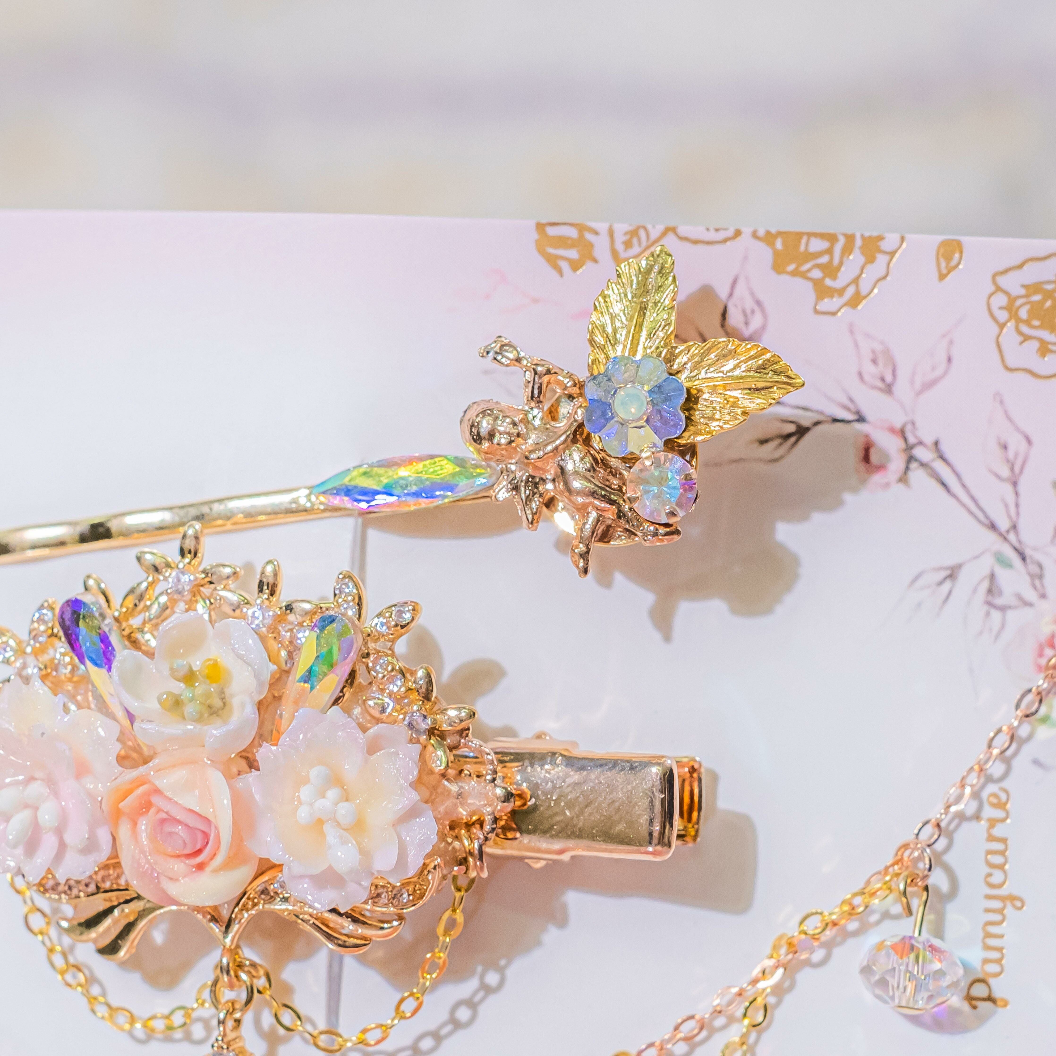 7 ❅ 邱比特櫻花玫瑰鍍金髮飾鏈3件套裝
