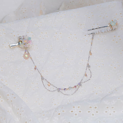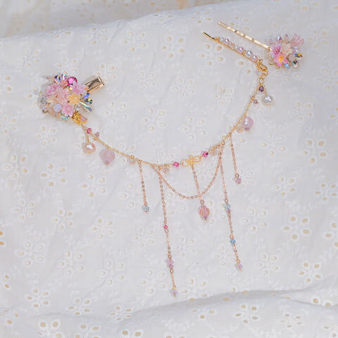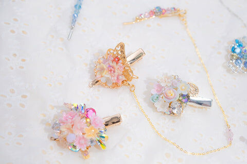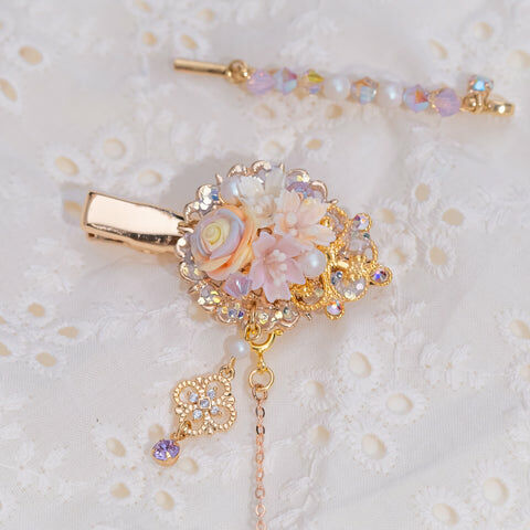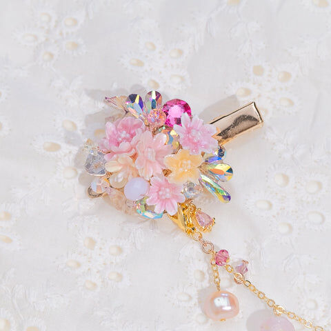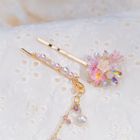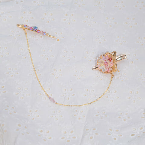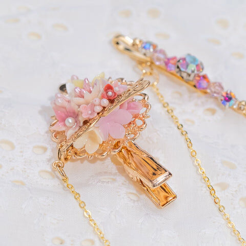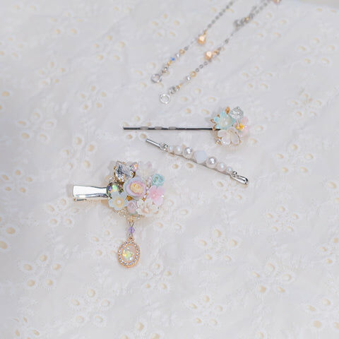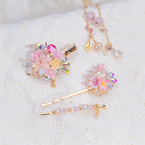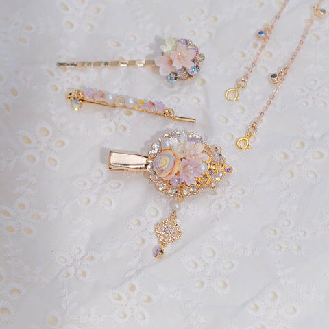 Design 5 - 彩虹玫瑰櫻花珍珠鴨嘴夾/一字夾/吊鏈組合套裝