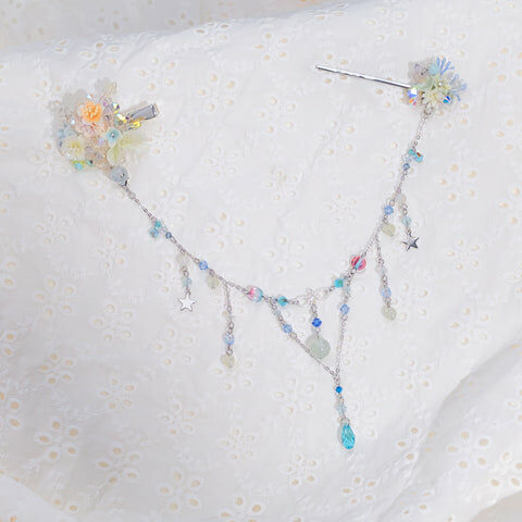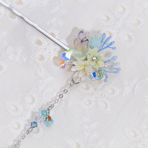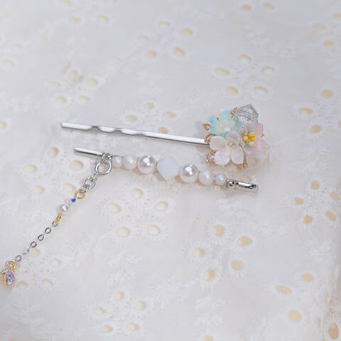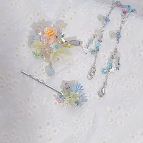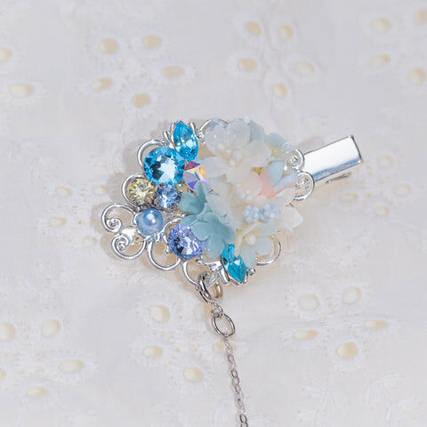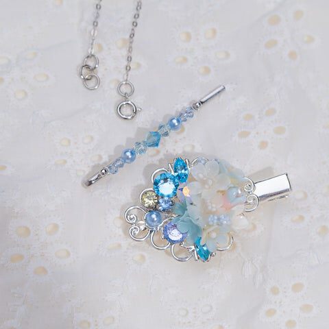 Design 2 - 冰藍白櫻花鴨嘴夾/一字夾/吊鏈組合套裝