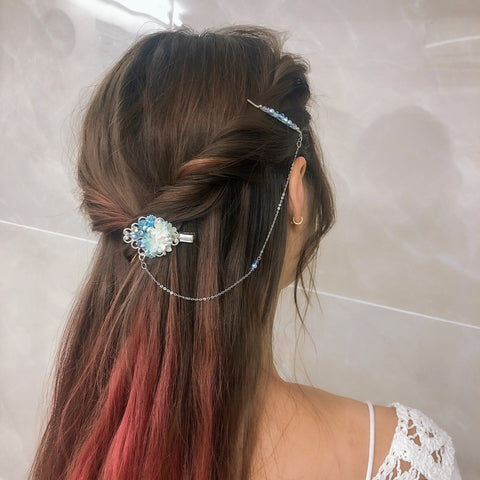 先把可拆式吊鏈掛扣好在髮夾上,