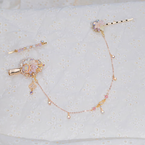 Design 1 - 雙臉蝴蝶水蓮鴨嘴夾/一字夾/吊鏈組合套裝